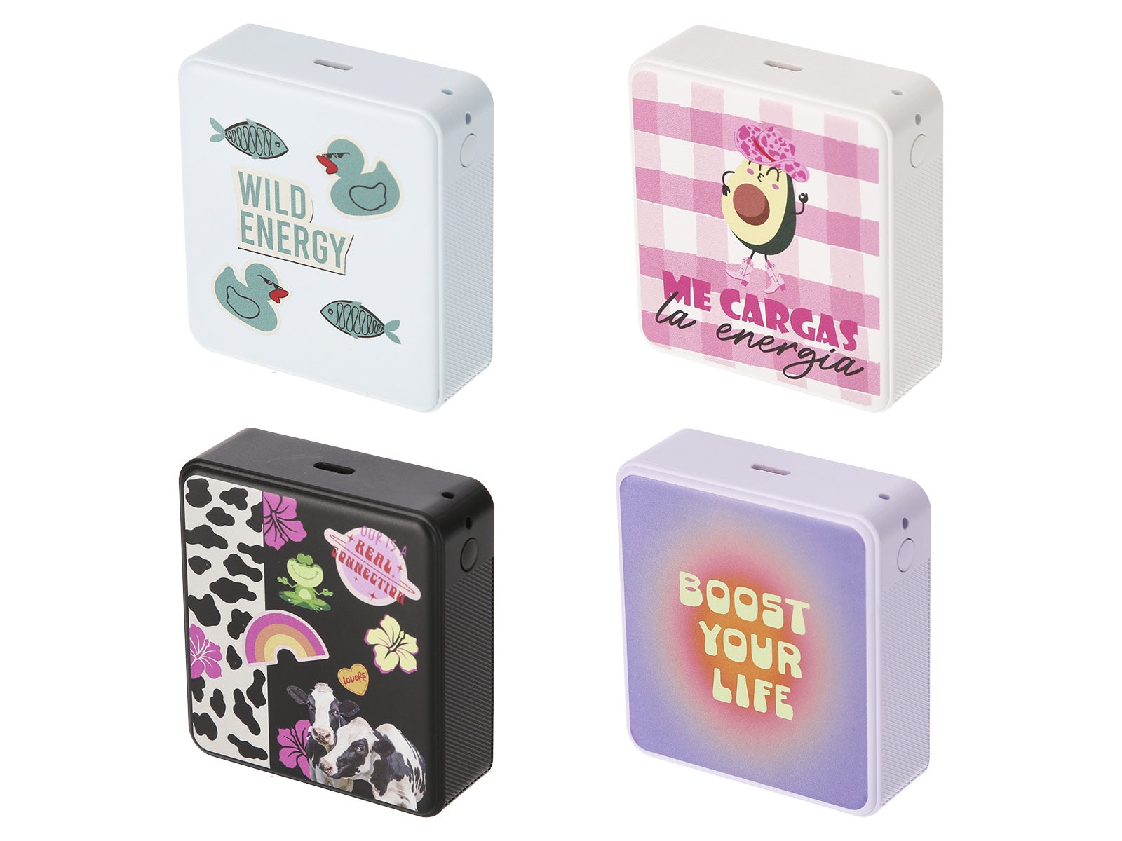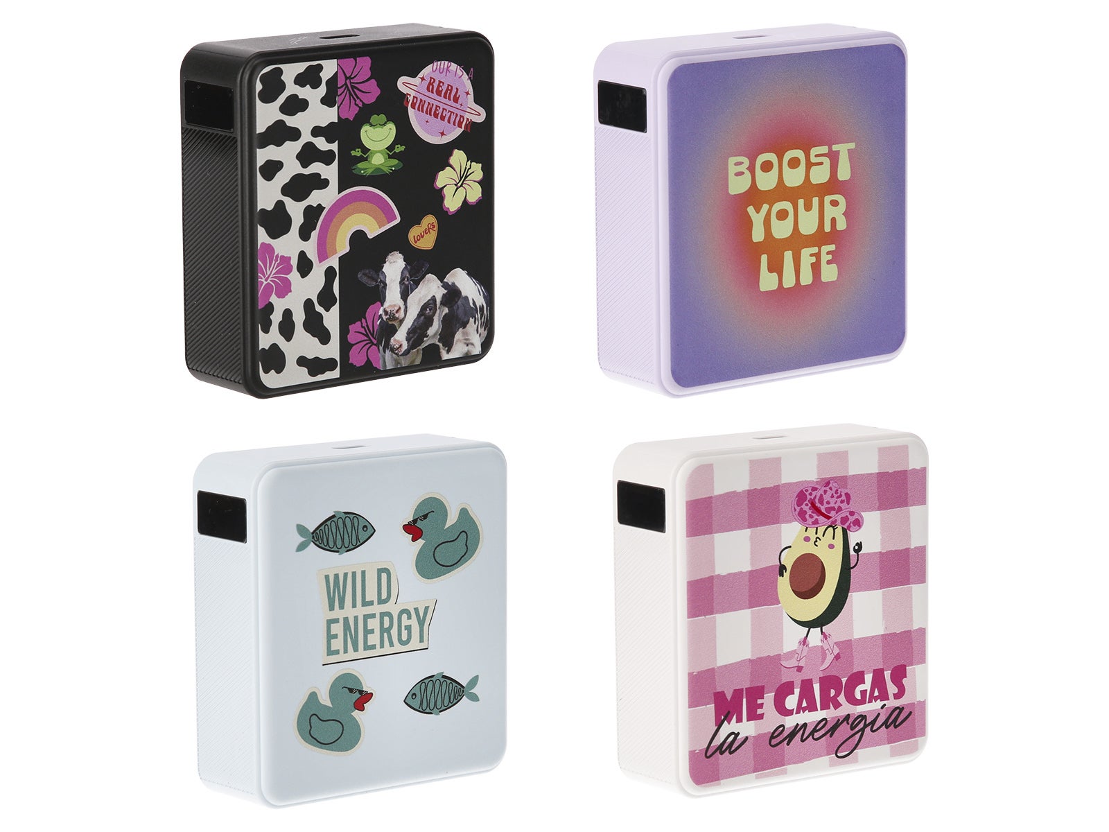 Power and design in your pocket! 10,000 mAh power bank with fast charge and digital display. Available in 4 exclusive designs so you never run out of energy.