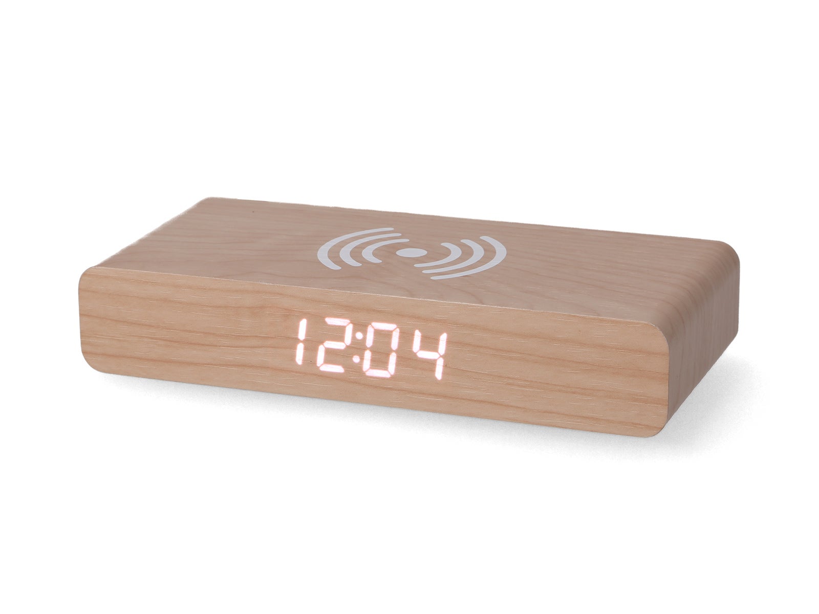 The minimalist elegance of its design is further enhanced with a wireless charging symbol on its top, which undoubtedly attracts all eyes. This symbol of two arcs and a dot is a modern visual clue of the compatibility that this alarm clock holds inside. Give your smartphone a power breakfast while you focus on your coffee in the morning!
