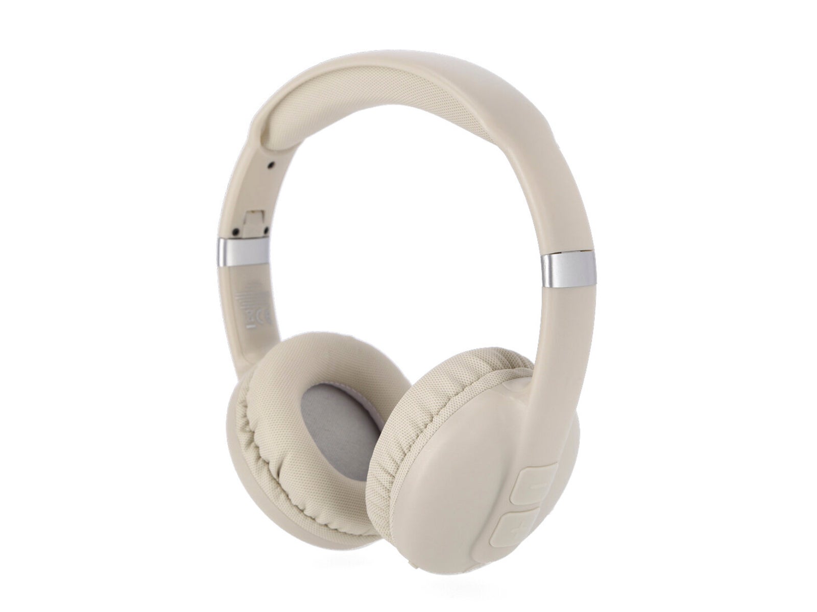 - Design: Beige round headband headphones.