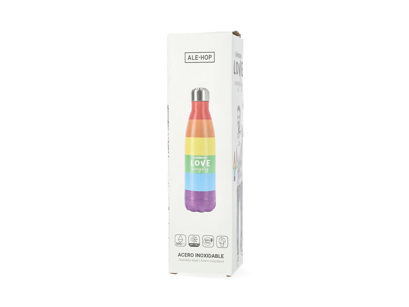 ALE-HOP "Celebrate Diversity" Bottle: stainless steel, rainbow design, inspiring text, perfect for staying hydrated on-the-go. Keep your drinks cold or hot and your unique style. Reusable and eco-friendly.