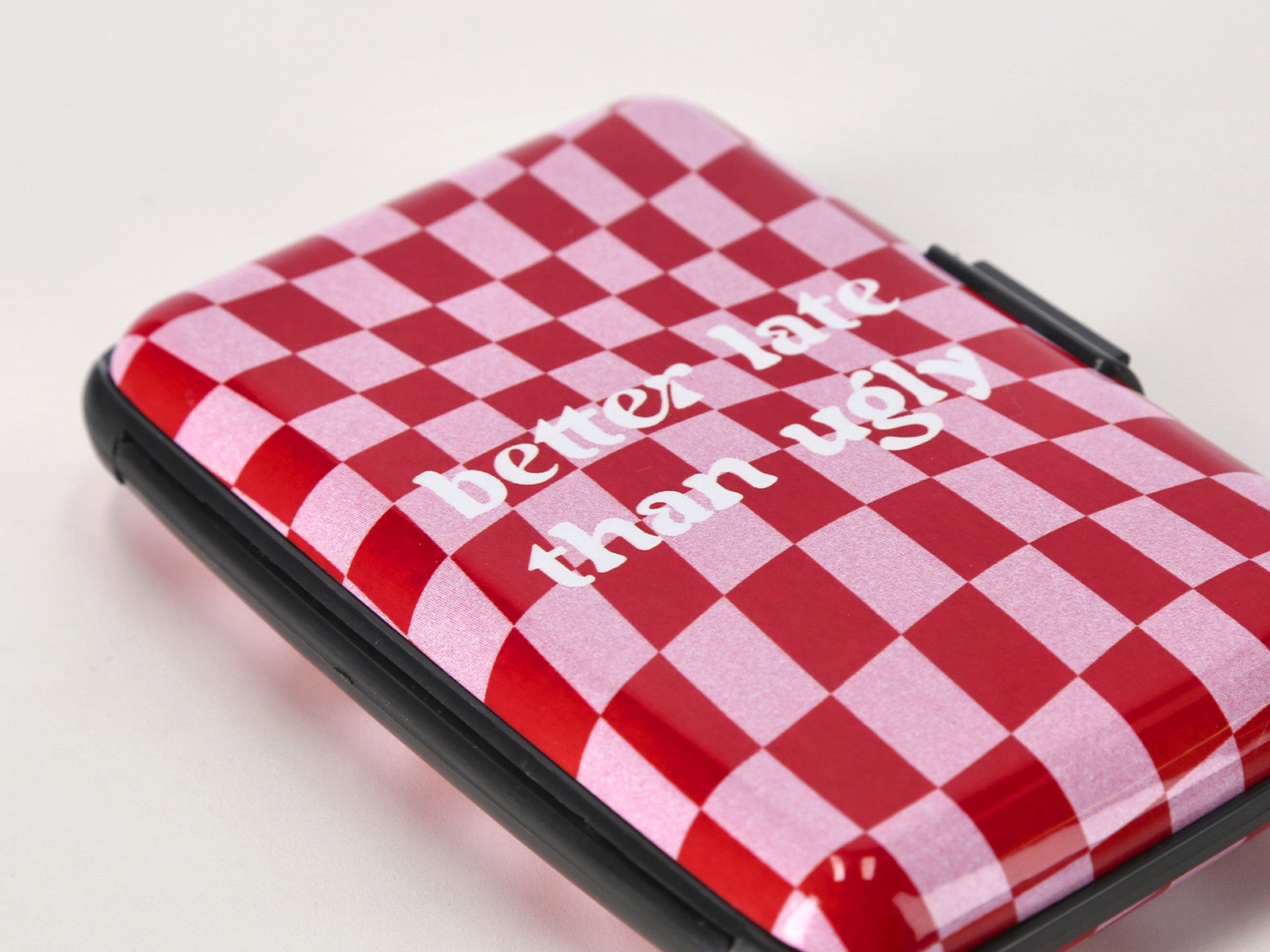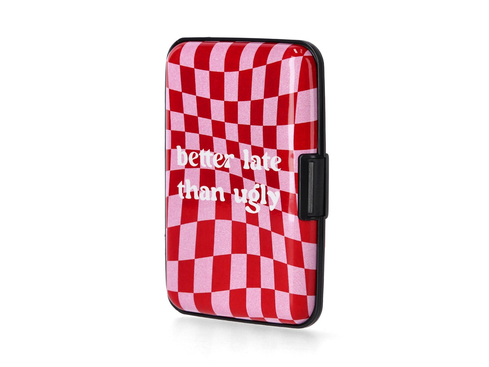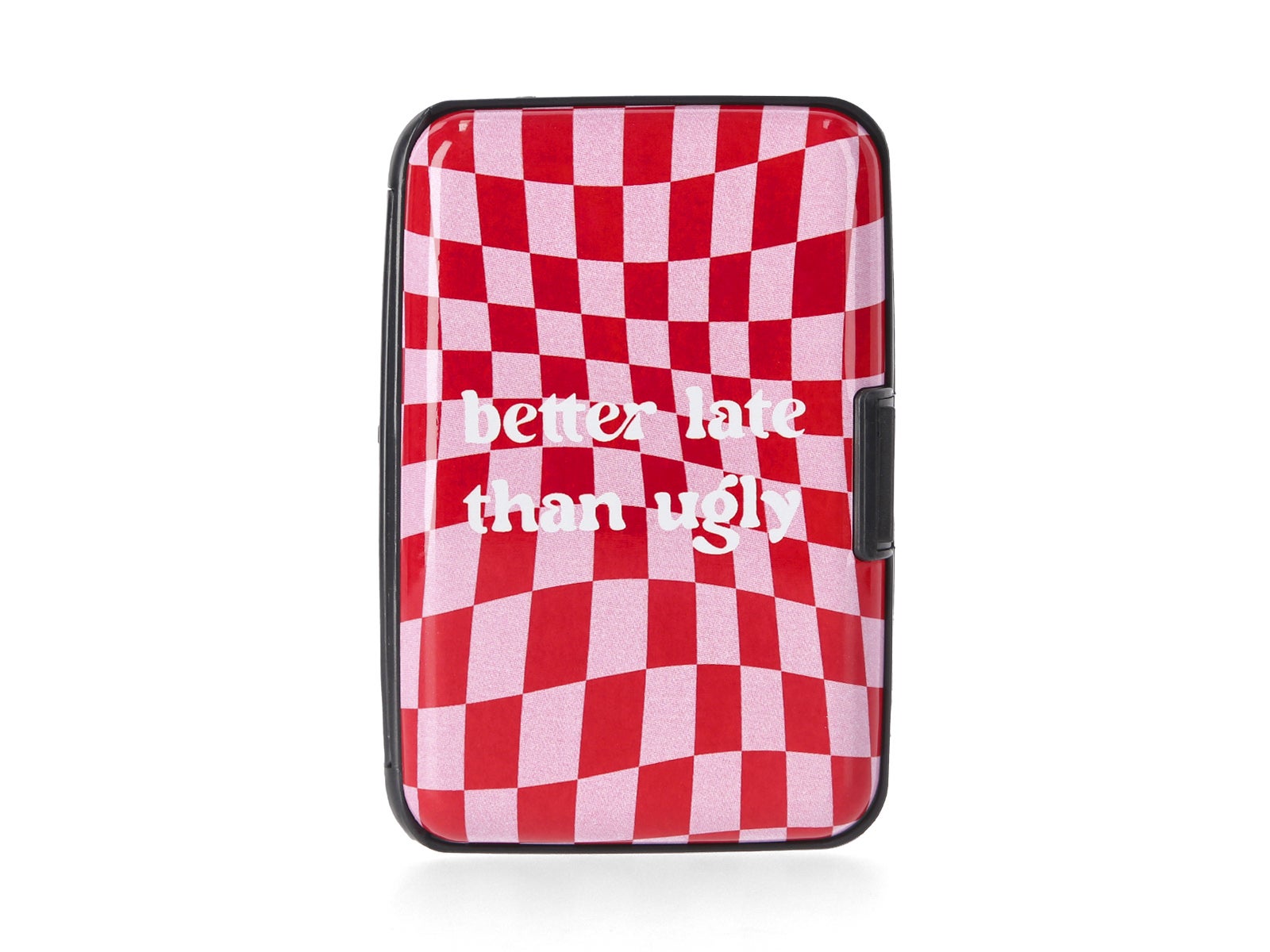 Discover the Better late than ugly wallet, perfect for security and style. With a rigid design and fun message, organize your cards in its colorful interior. Later, but with style!