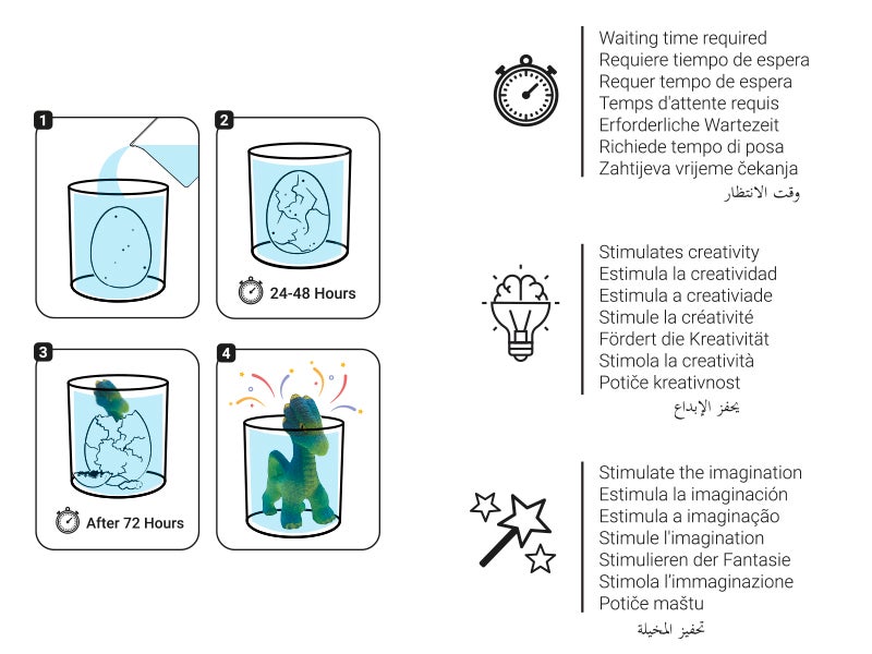 Design: colorful egg that contains a little animal inside, which hatches when placed in water, and that's when the dragon is born.