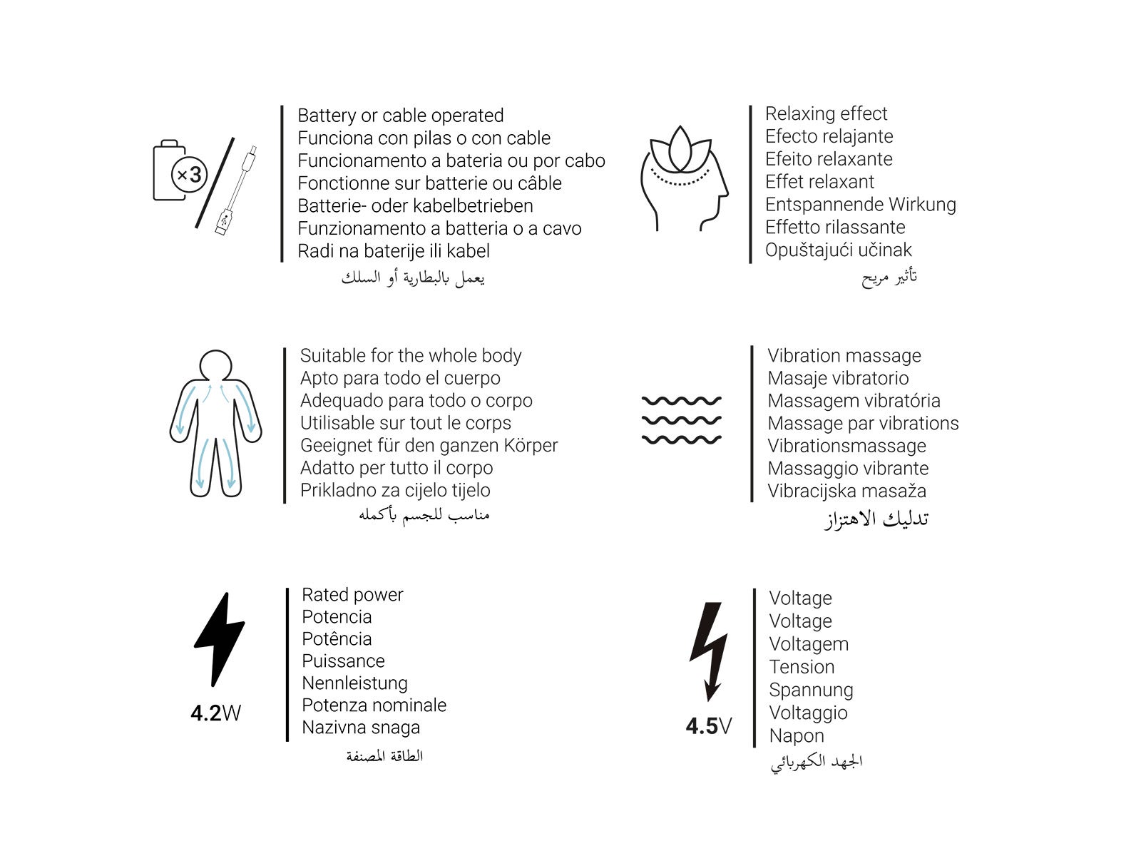 - Vibrating massage: Its effective vibration system works your muscles so you only have to focus on relaxing. What are you waiting for to try it?
