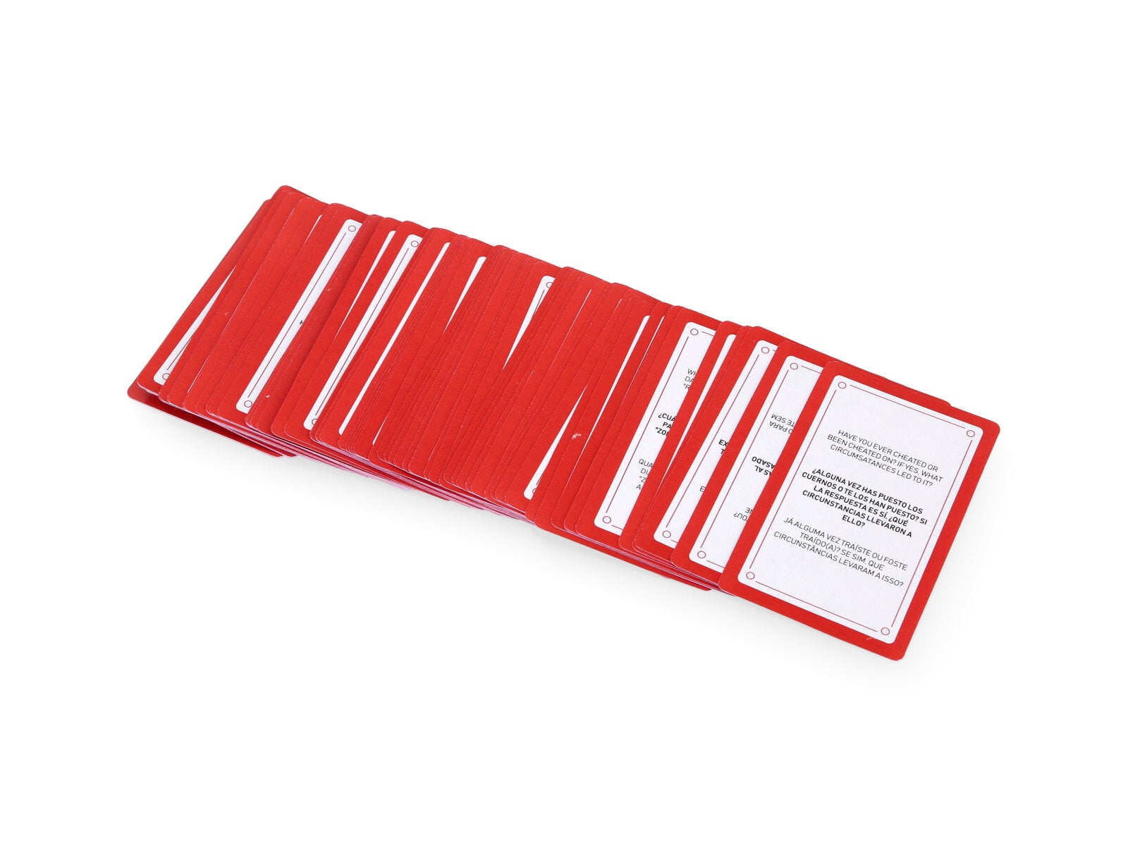 The pack of sex questions cards is for the most daring. 70 very 'hot' cards! Each card contains a question that you or your friends must answer out loud. Some of its questions are very daring. Will you dare with all of them? What physical characteristic do you find most attractive in the opposite sex? And in your same sex? What is the funniest or most scandalous sex story you have ever heard? And many more questions... Let the questioning round begin!