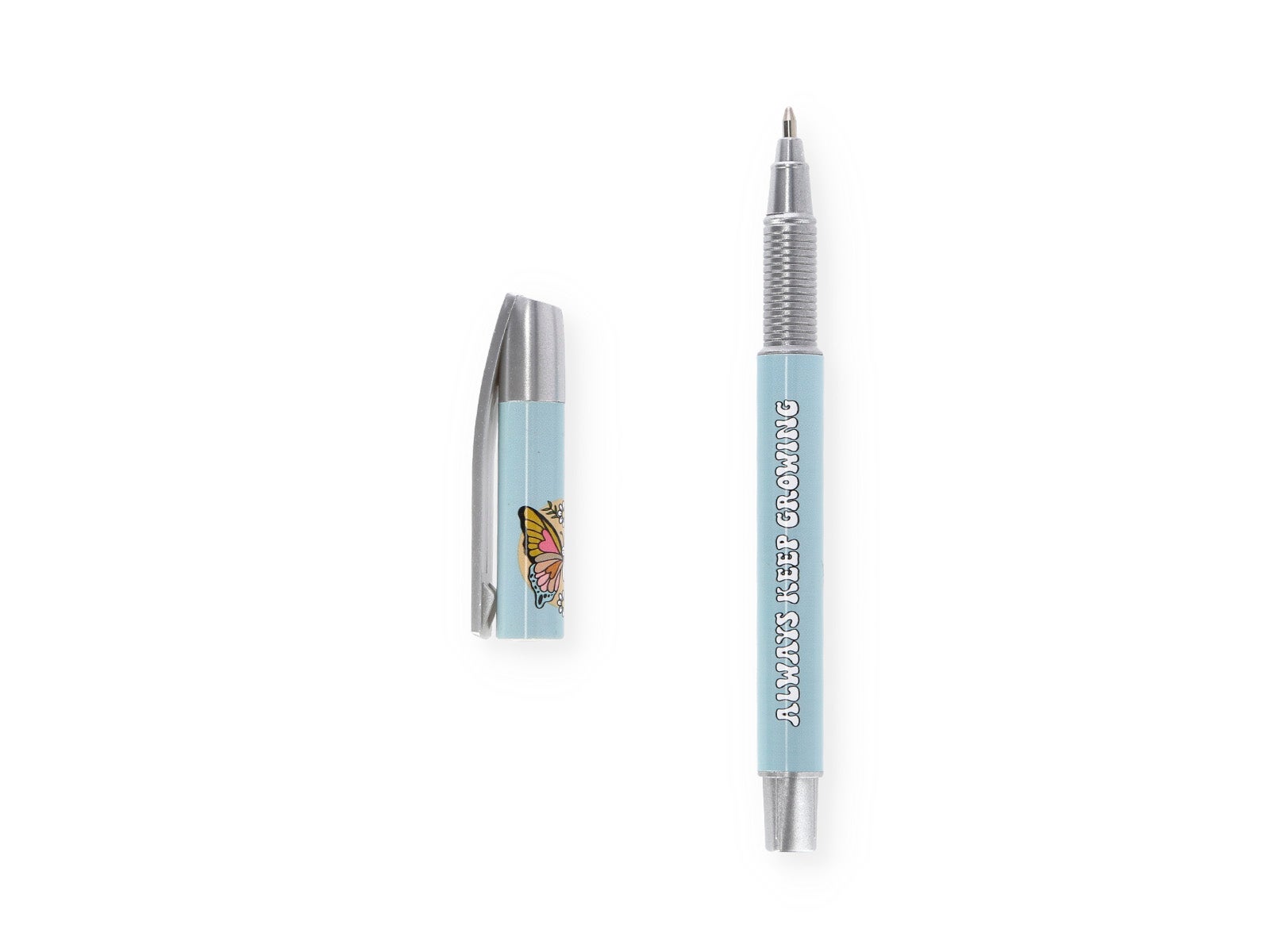 - Design: With an elegant light blue body and floral decorations, the pen is ready to add a touch of style to your day. It features the charming figure of a colorful butterfly on the cap. A breath of fresh air in the stationery world!