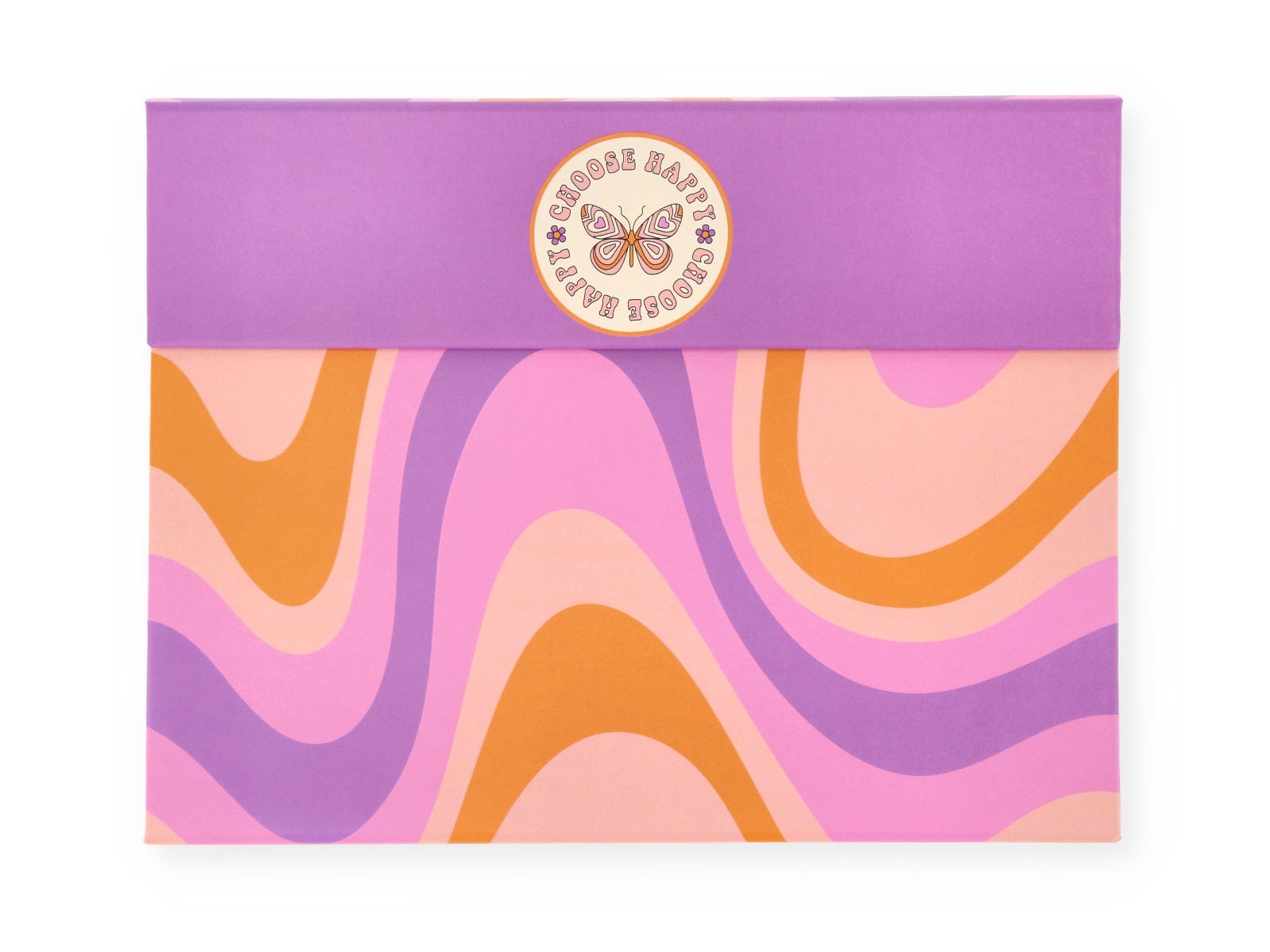 <li>On the cover, a motivational phrase "Choose HAPPY" on a round floral sticker, reminding you of the importance of choosing to smile every day.</li>