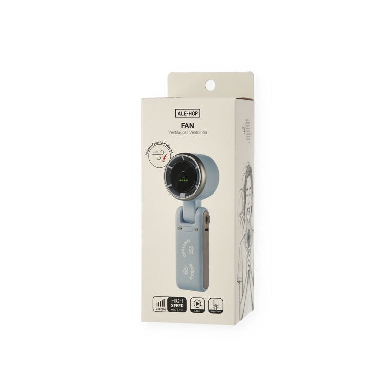 The ALE-HOP powerful blue fan is the perfect companion for beating the heat at any time. Compact, lightweight and easy to carry, its modern blue design makes it a practical and stylish accessory for the summer.