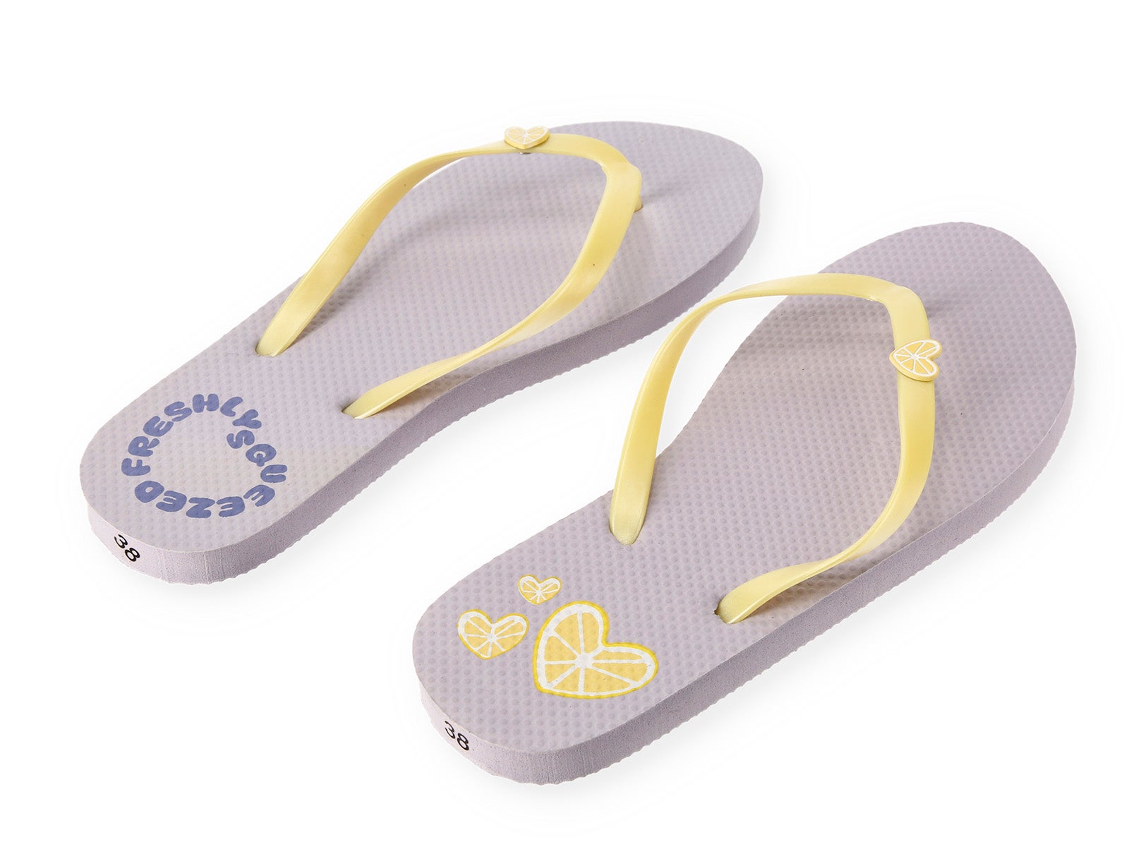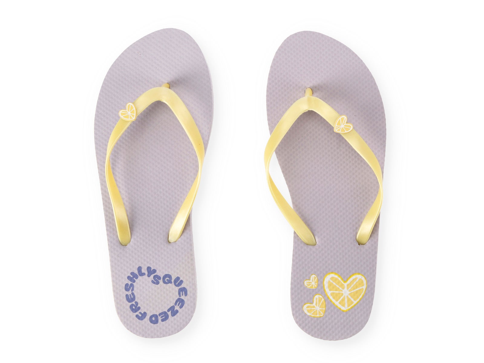 Get ready for the beach or pool with ALE-HOP's Flip-Flops. Their soft pastel lilac design combined with yellow details creates an irresistible summer contrast. Featuring the fun "Freshly squeezed" slogan and heart-shaped lemon motifs, these flip-flops are the perfect blend of comfort and trend for your sunny days.