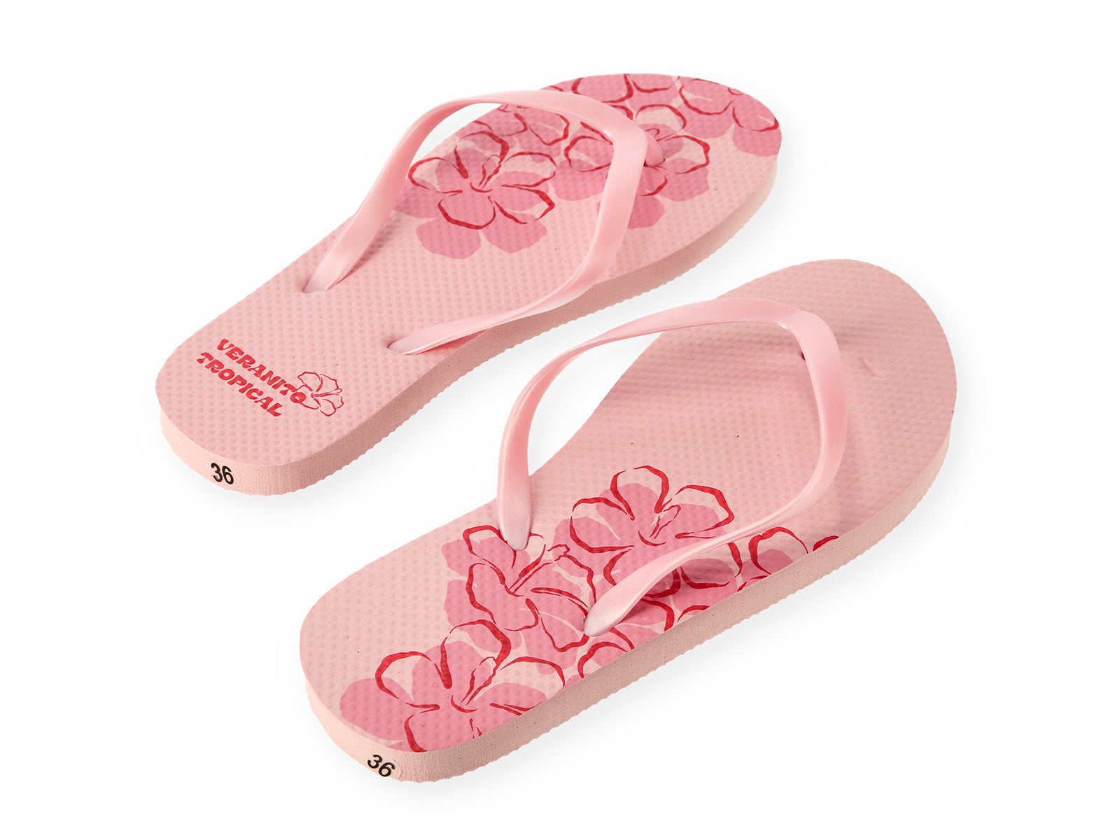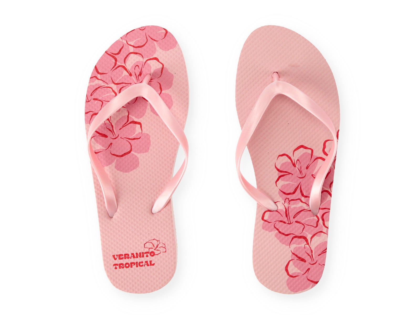 Get ready to enjoy the sun with ALE-HOP's Flip-Flops. Featuring a vibrant design in pink tones and a beautiful hibiscus flower print, these flip-flops are the definition of a relaxed and colorful summer. Ideal for the beach, the pool, or just staying comfortable at home with a vacation spirit always in mind.