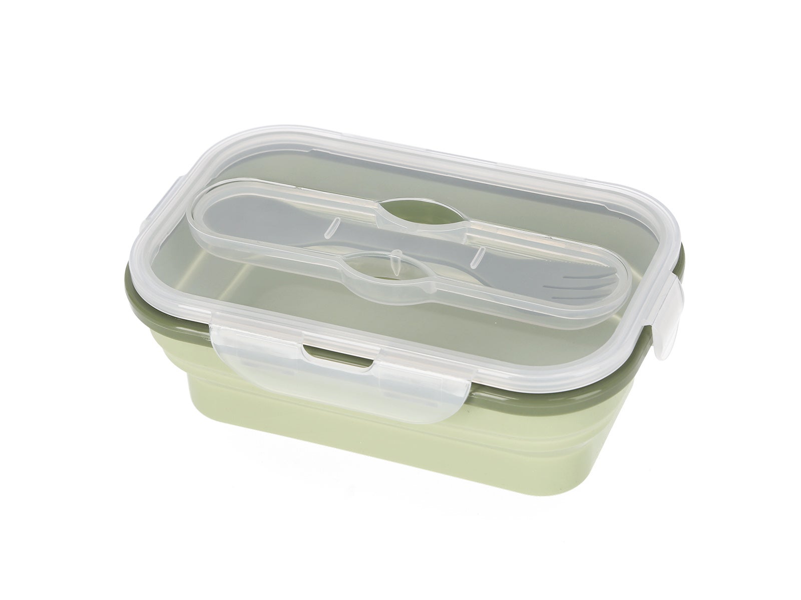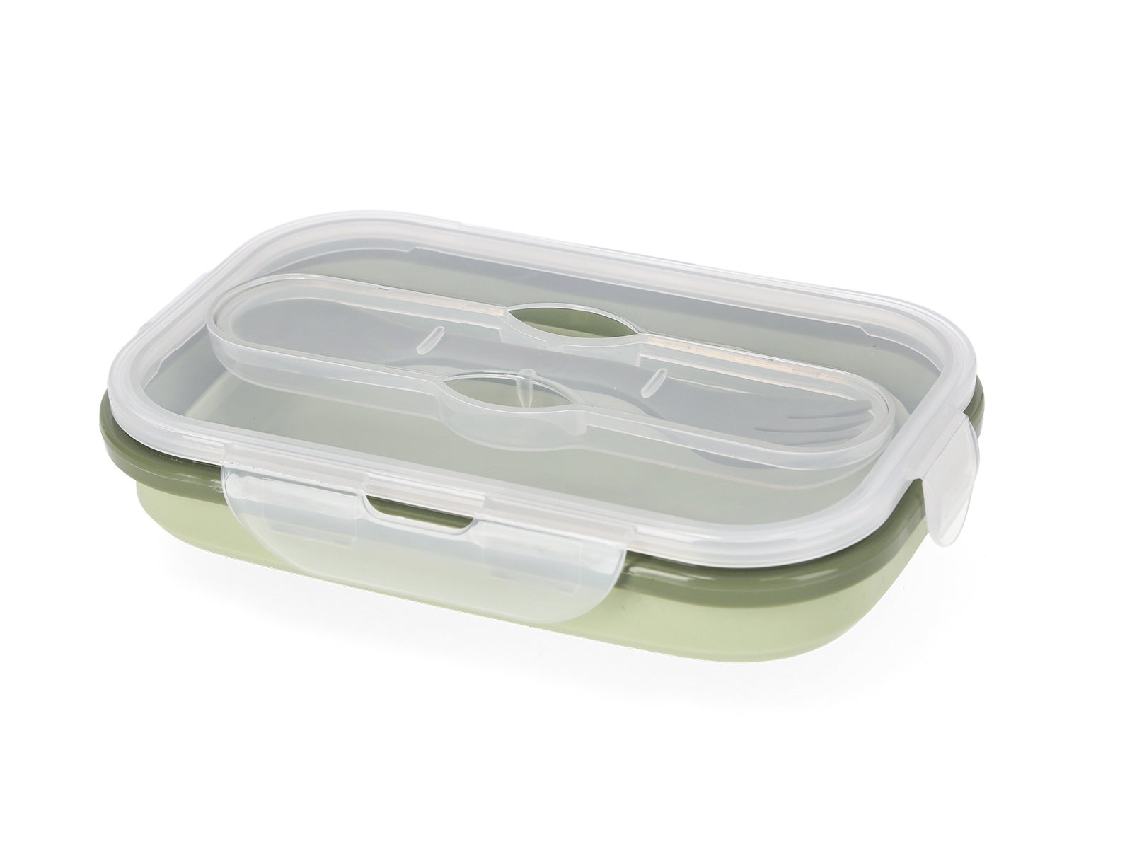 - Design: This green silicone sandwich box, with its transparent lid, will amuse everyone. It includes 4 comfortable flaps for a secure closure and space to store the cutlery, so you will never find yourself in a hurry! Moreover, it folds easily, becoming flat to store it wherever you want. It will impress everyone!