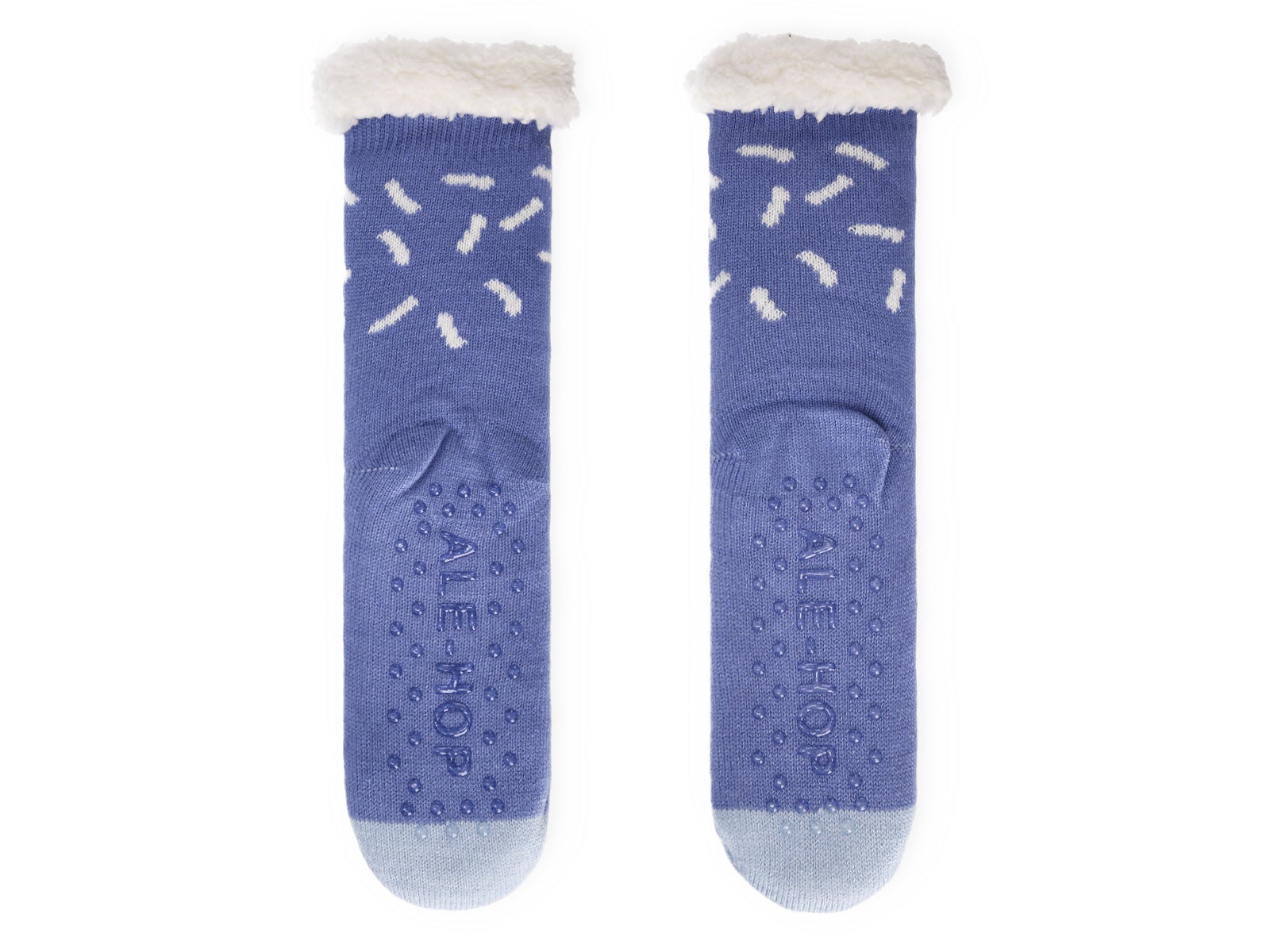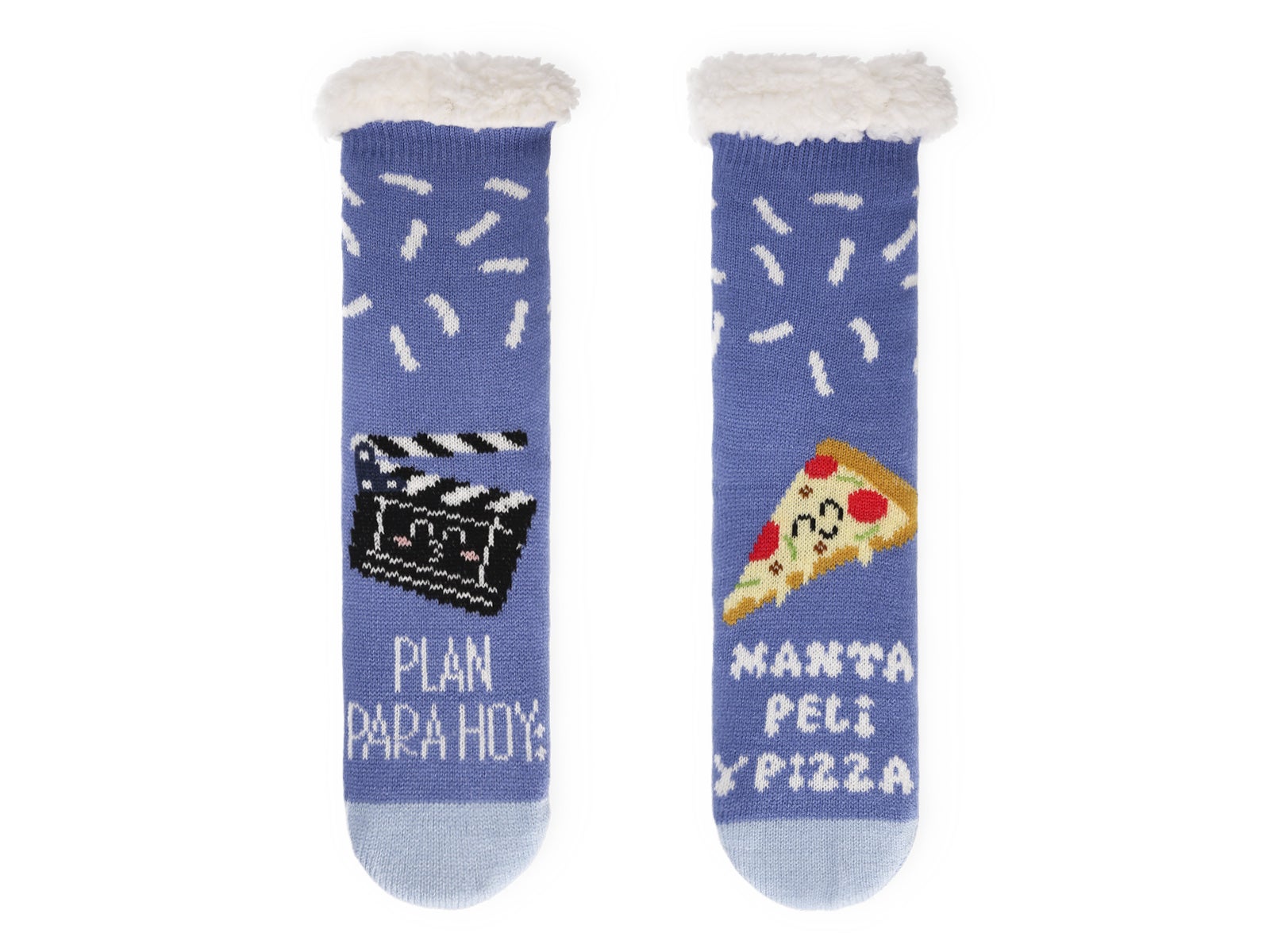 Enjoy your movies and pizza with ALE-HOP's thick socks. Sheepskin interior, non-slip sole, and fun design. Comfort and warmth for a perfect plan.