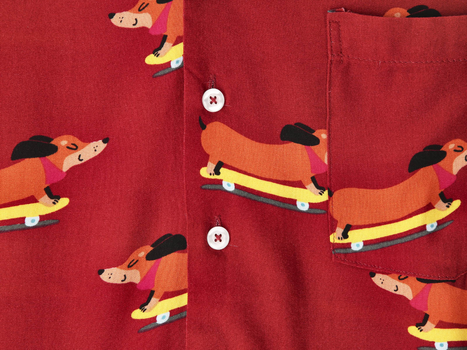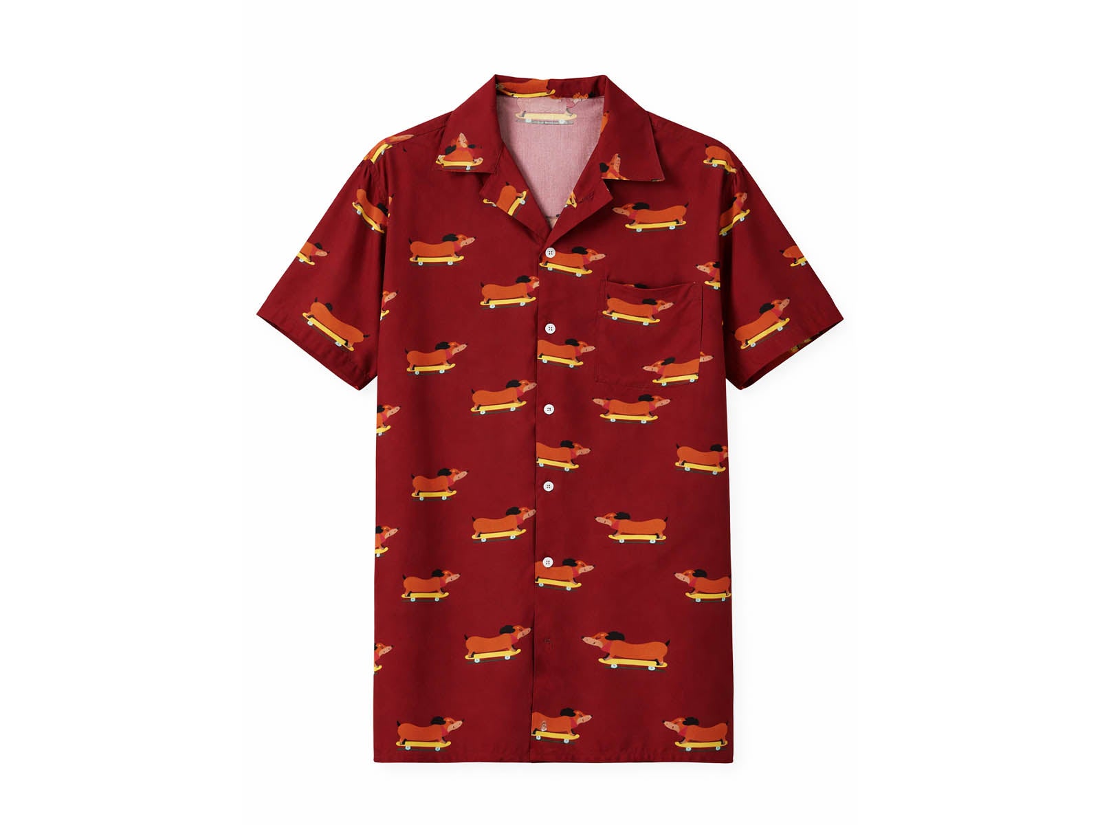 Give your wardrobe a radical twist with the Unisex Skater Dog Shirt. This garment stands out with its deep maroon color and a print of friendly dachshunds on skateboards, creating a modern, casual look full of personality. With ALE-HOP's creative signature, it's the ideal shirt for those seeking a unique style that blends humor and trend.