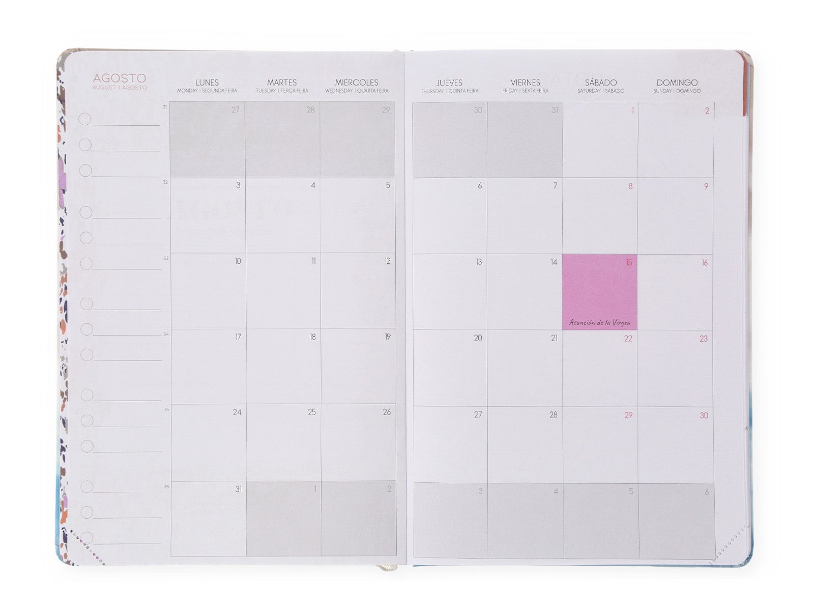 - Diseño encantador: Esta agenda cuenta con una tapa dura que aguanta todas tus aventuras diarias mientras presume de un estilo moderno.
