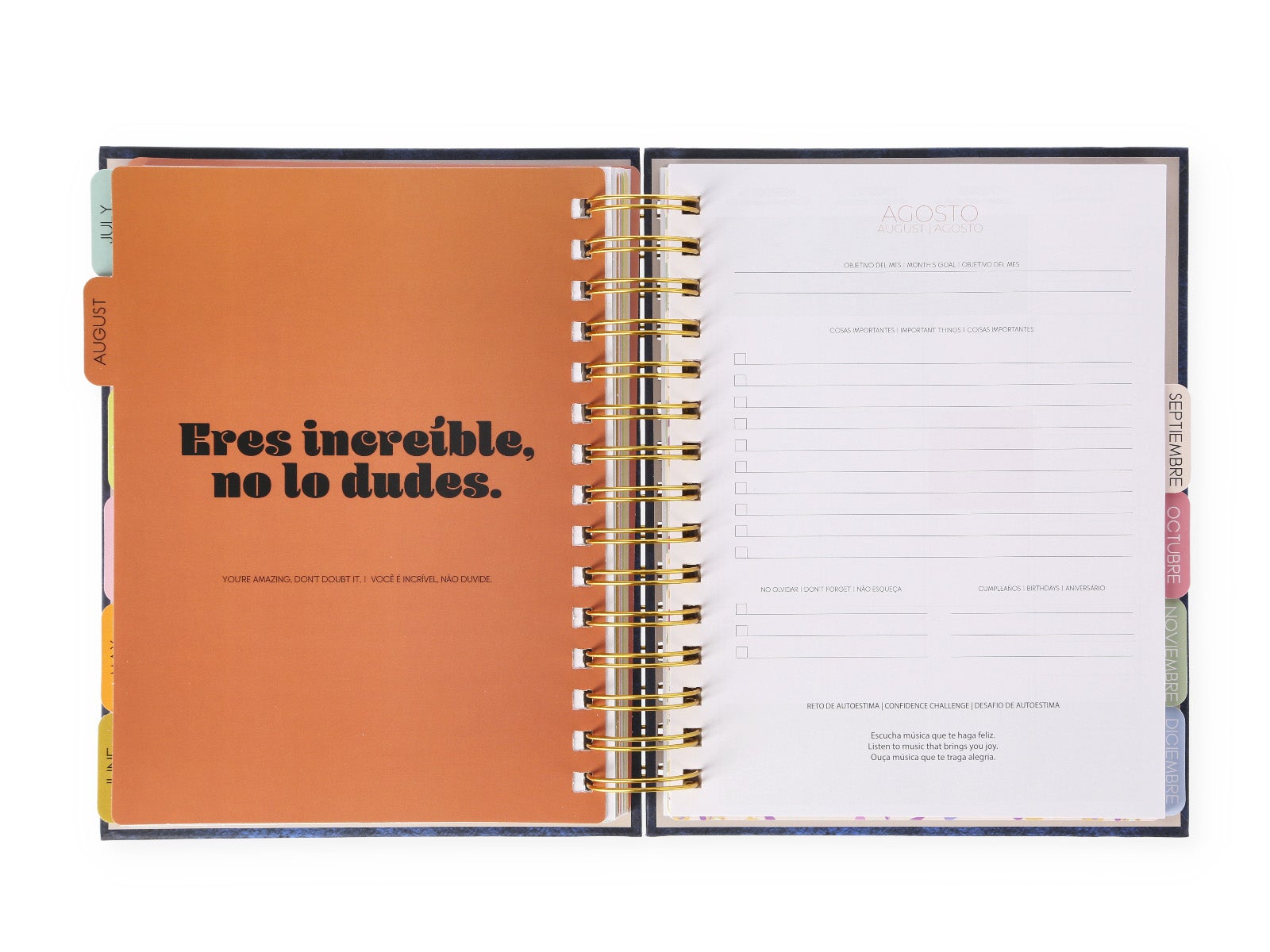 - Diseño Práctico: Ideal para anotar cada uno de tus días, con un formato A5 que es perfecto para llevar contigo a todas partes.
