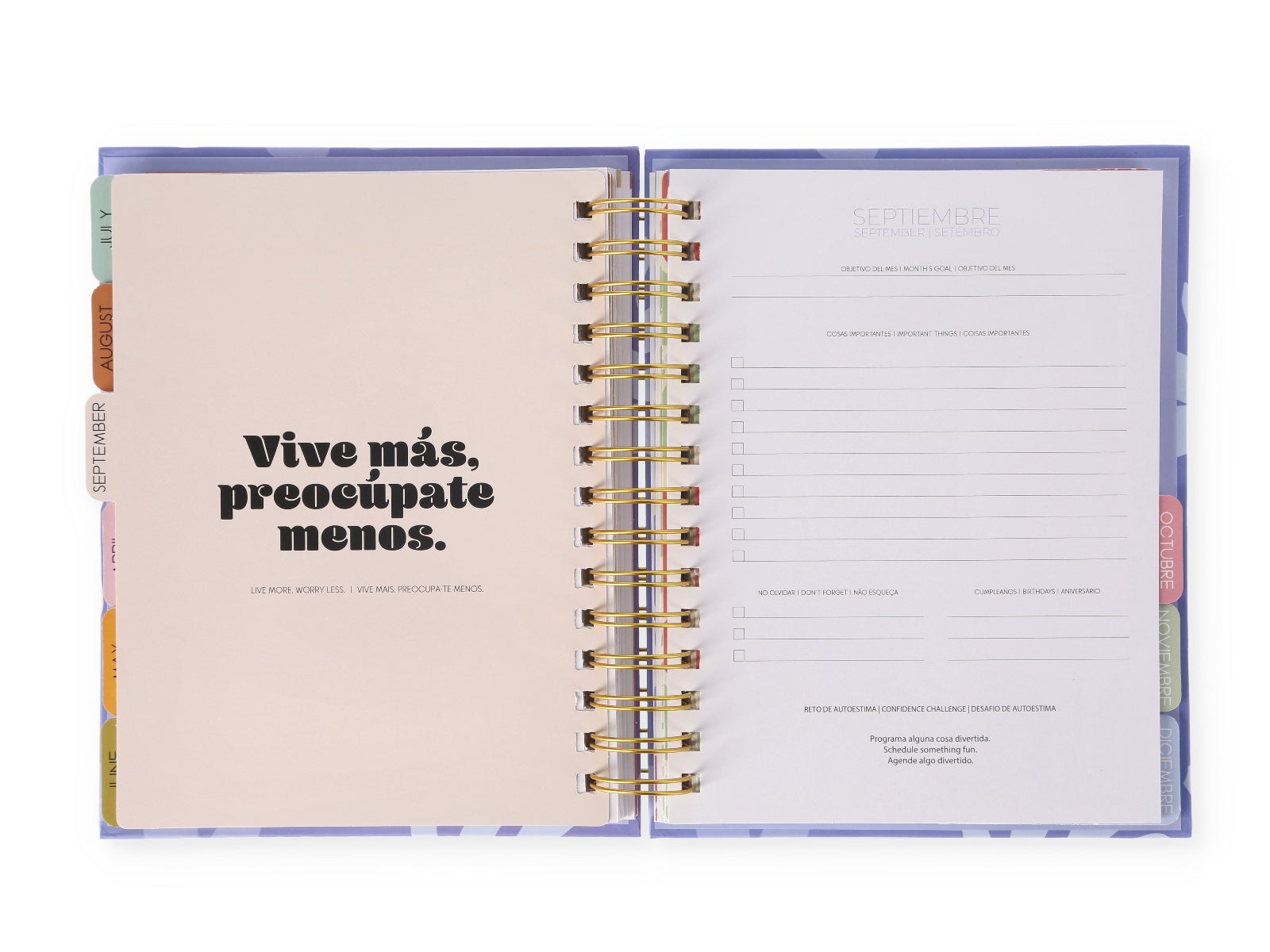 - Toques finales: Encuadernación resistente porque sabemos que tu vida es intensa pero organizada.