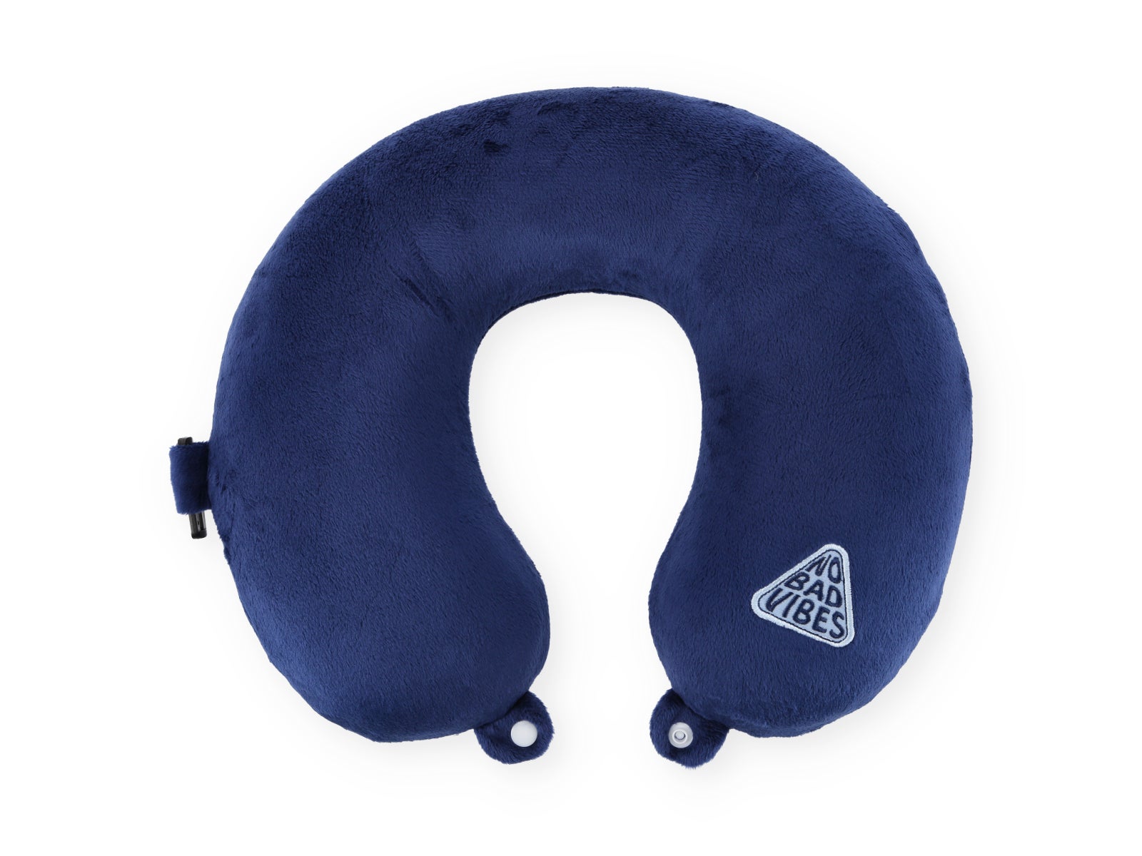 Lleva contigo la Almohada de viaje azul - Elegante de ALE-HOP. Diseñada especialmente para facilitar tus viajes y ser tu compañera de descanso en todos tus recorridos. Con su diseño en azul intenso y un mensaje inspirador que dice: NO BAD VIBES, que te acompañará en todas tus aventuras.- Su forma de herradura se acomoda a tu cuello y ofrece un soporte ergonómico para tu comodidad.