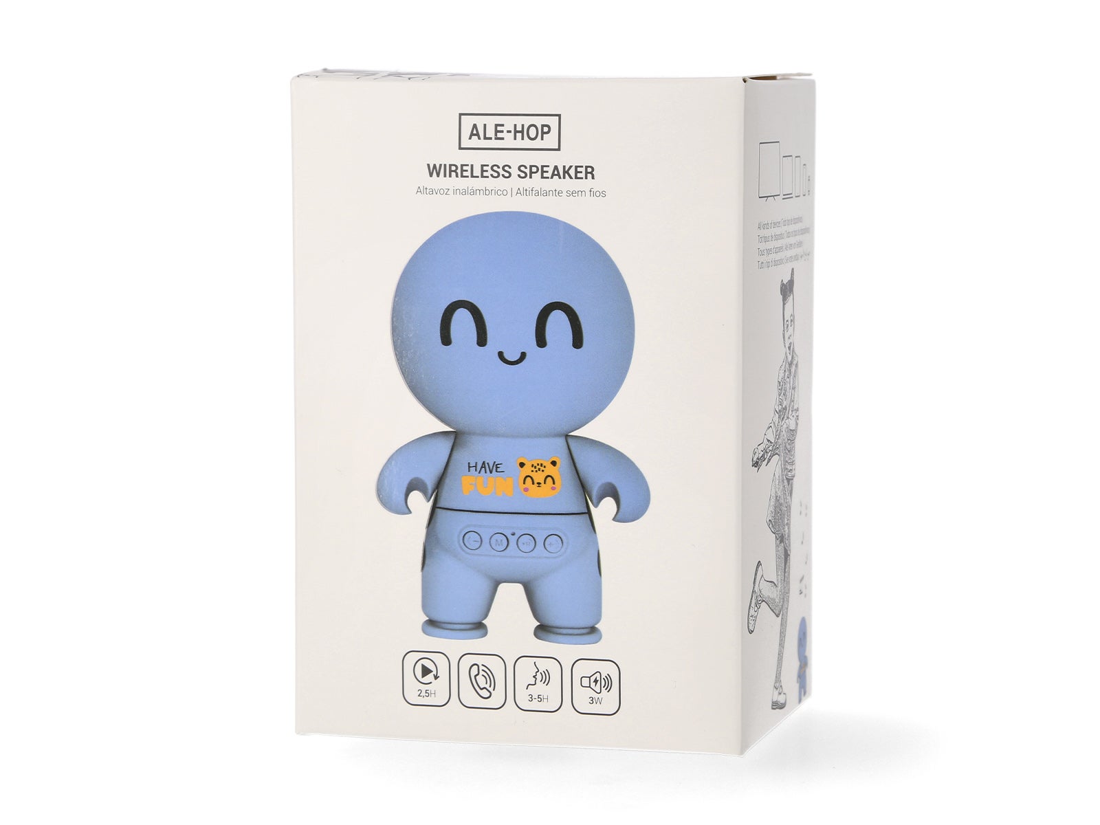 Lleva contigo la alegría del Altavoz muñeco azul y haz que cada momento sea inolvidable con ALE-HOP.