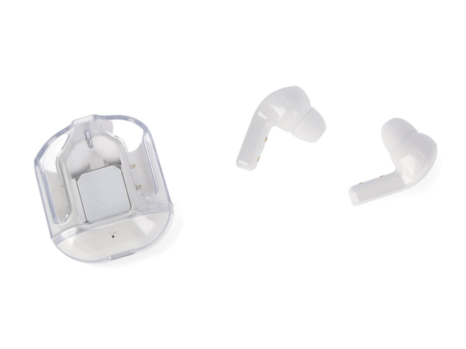 Comparte tu música favorita o conversa con libertad en cualquier lugar gracias a ALE-HOP y sus increíbles Auriculares inalámbricos transparentes blancos. Además, el toque dorado en los puntos de contacto añade un detalle chic que te encantará. ¡No te los querrás quitar!