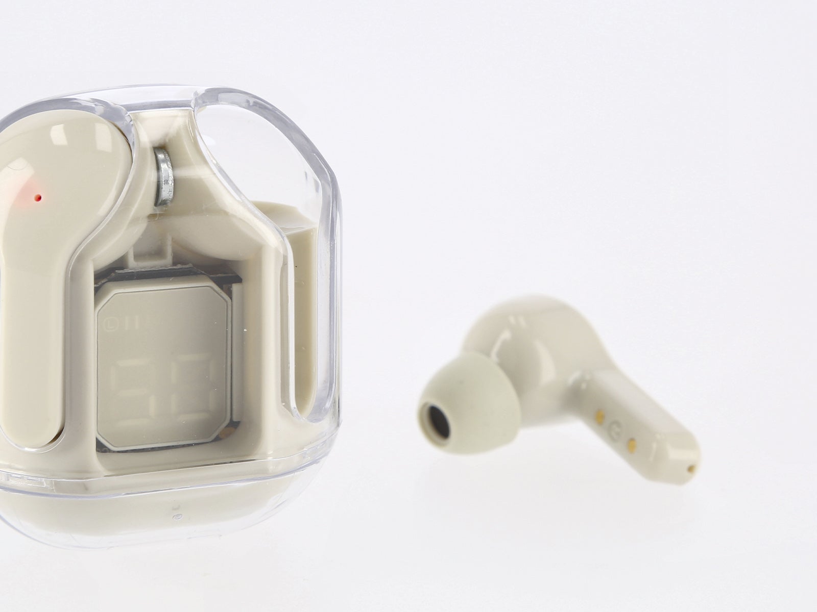 Auriculares Inalámbricos Transparentes Gris de ALE-HOP: estilo y libertad sin cables. Diseño compacto, color moderno, comodidad máxima y portabilidad. ¡Escucha tu música con elegancia!