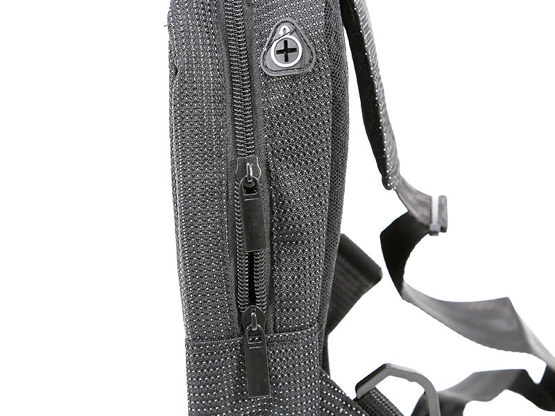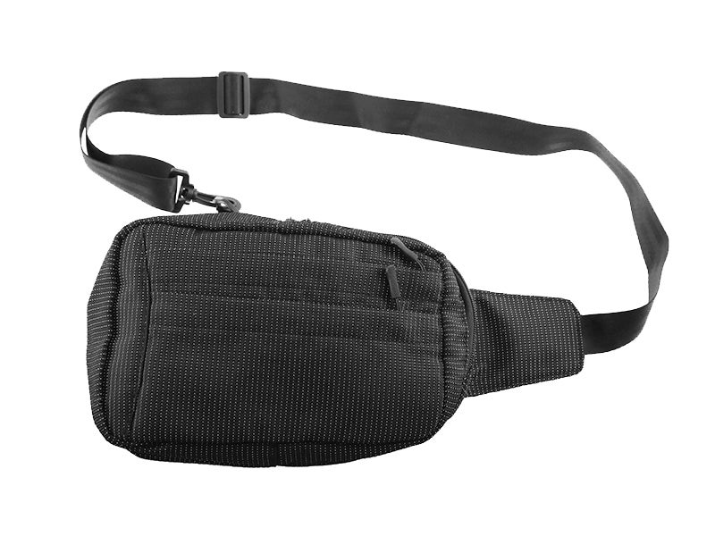 Características: dispone de dos bolsillos pequeños en la parte frontal y un bolsillo grande con compartimento para smarphone y bolígrafos. Cierre con cremallera. Cinturón ajustable con dos posiciones para colocar la cinta