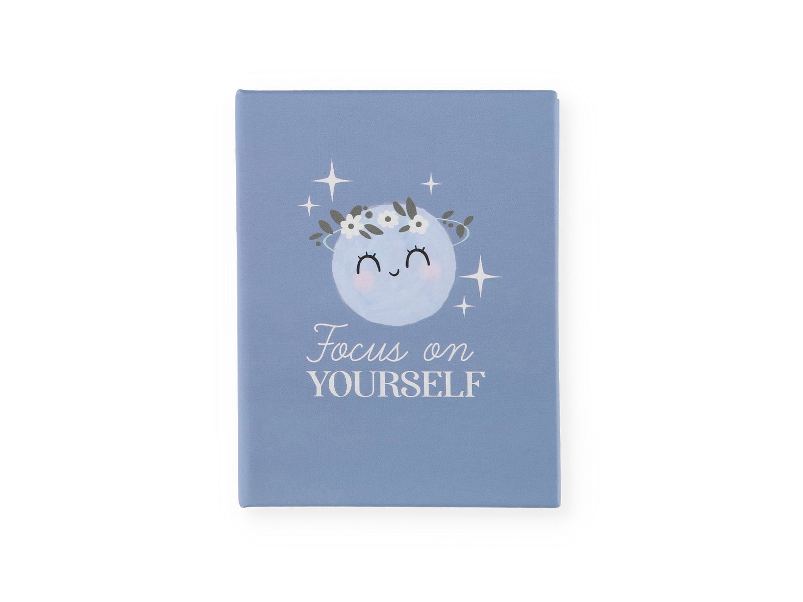 Diseño: en su exterior es como una mini libreta de tapa dura de color azul con icono de una luna y la frase ‘focus on yourself’. En la contraportada tiene un icono de luna.