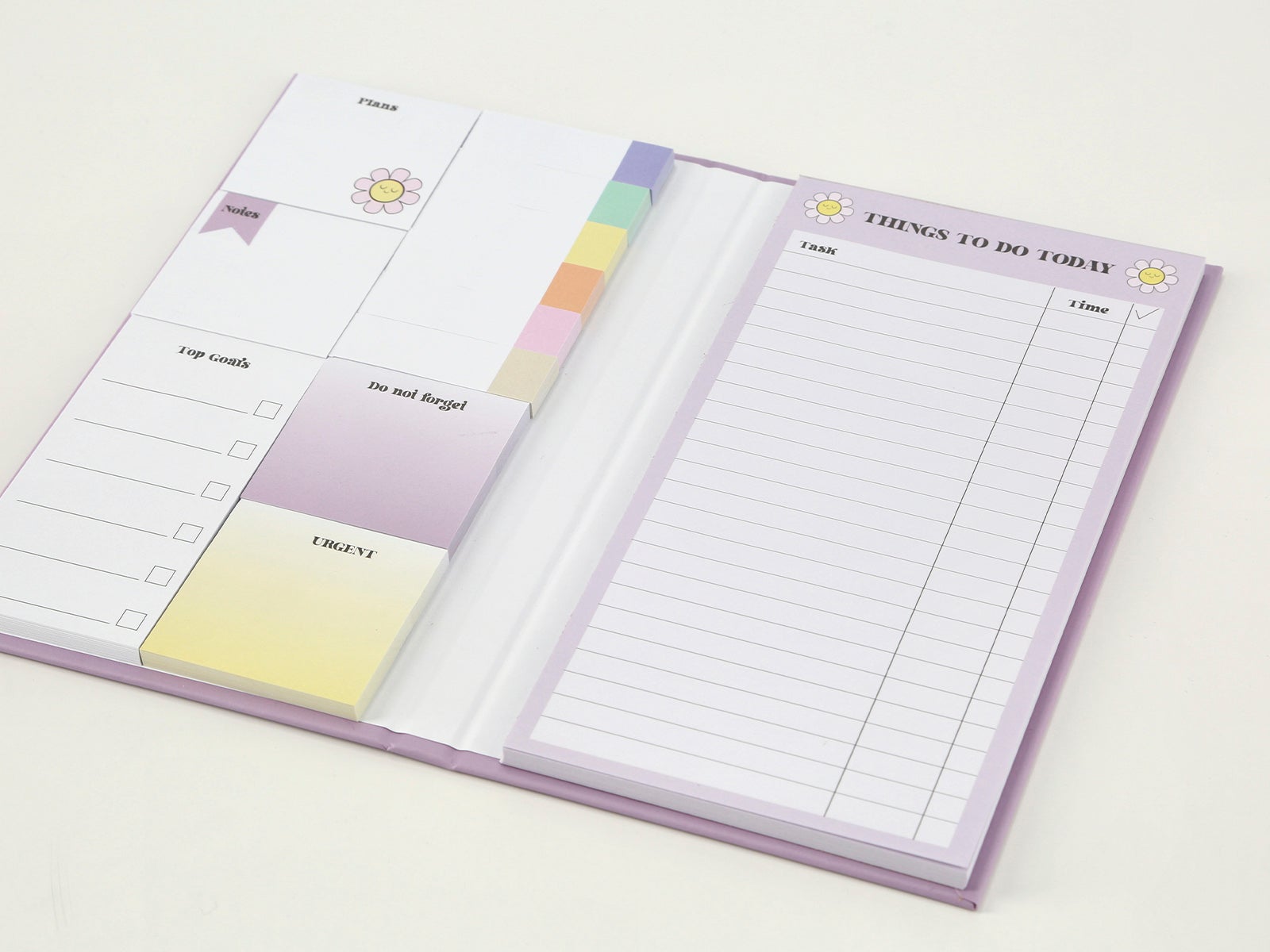 - Planificación Colorida: Despliega la alegría con un panel lleno de secciones para planes, objetivos, y recordatorios urgentes, todo enmarcado con notas adhesivas multicolores que alegran la vista.
