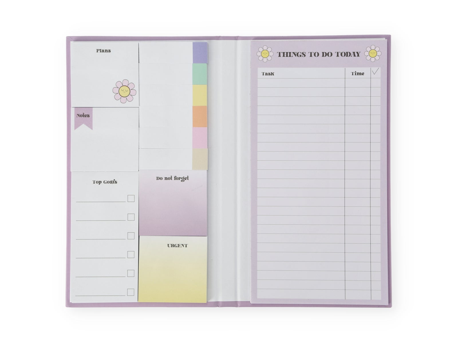 - Lista de Tareas: No más excusas para olvidar lo importante. Anota tus "cosas por hacer hoy" con espacios para tareas y tiempos, asegurando productividad y satisfacción al final del día.