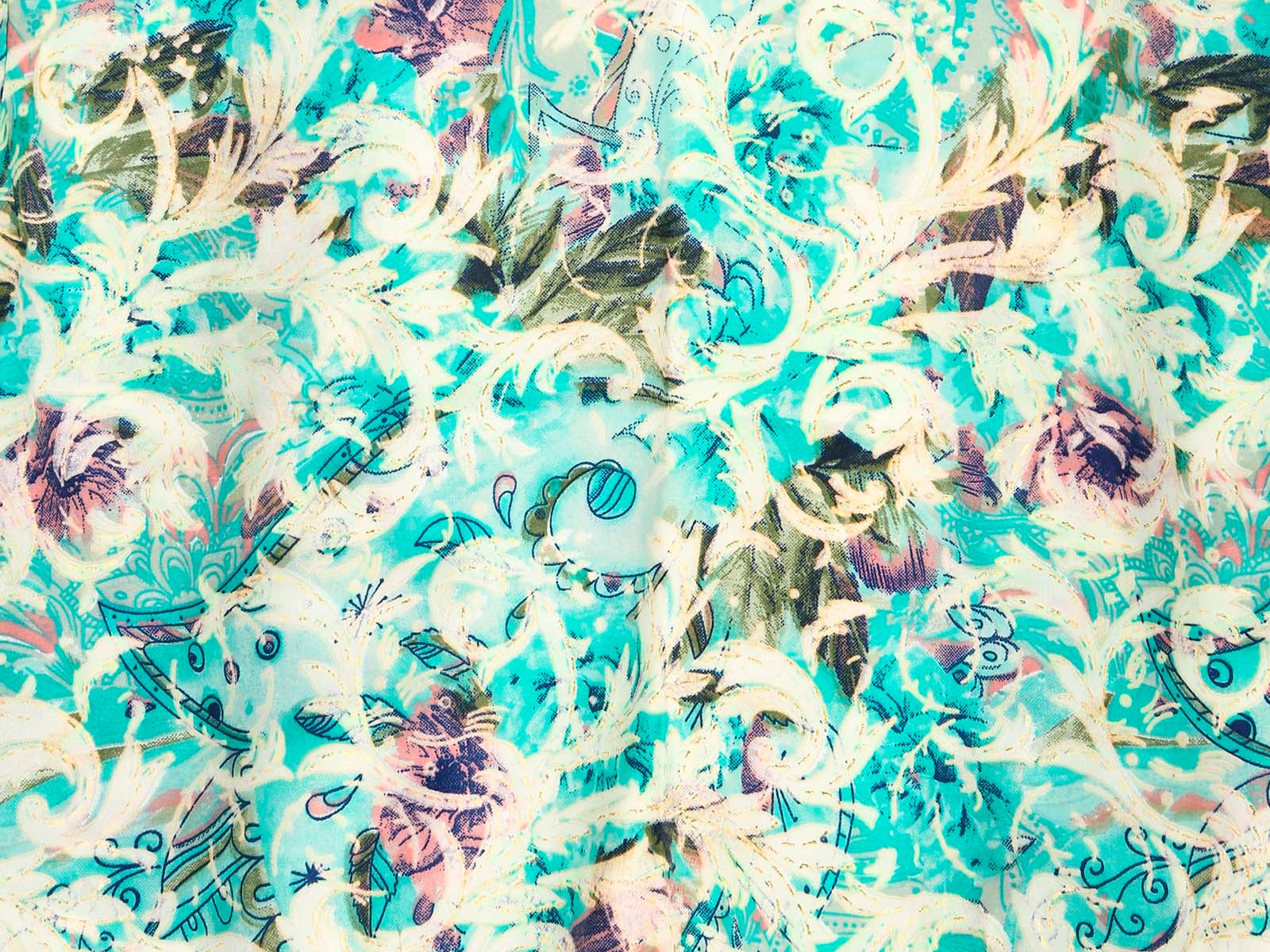 Diseño: estampado en tonos turquesa, con un lazo en la parte delantera ajustable a la medida que quieras. ¡Es súper cómodo!