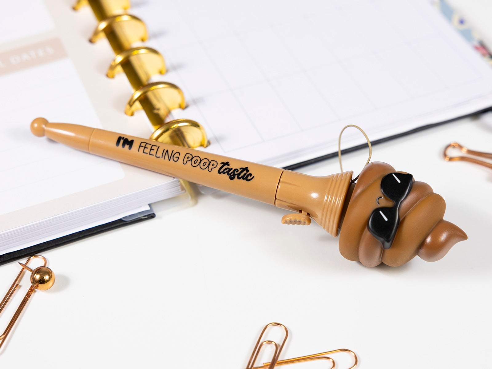 El boli boing caca - I'm feeling POOPtastic es ese pequeño tesoro de papelería que convierte cualquier ratito de estudio o trabajo en un momento de risas. Su diseño gamberro y su espíritu juguetón lo convierten en el compañero perfecto para los más bromistas, para regalar o para darle un toque diferente a tu escritorio. Un guiño de humor muy propio de ALE-HOP, pensado para quienes no se toman la vida demasiado en serio.