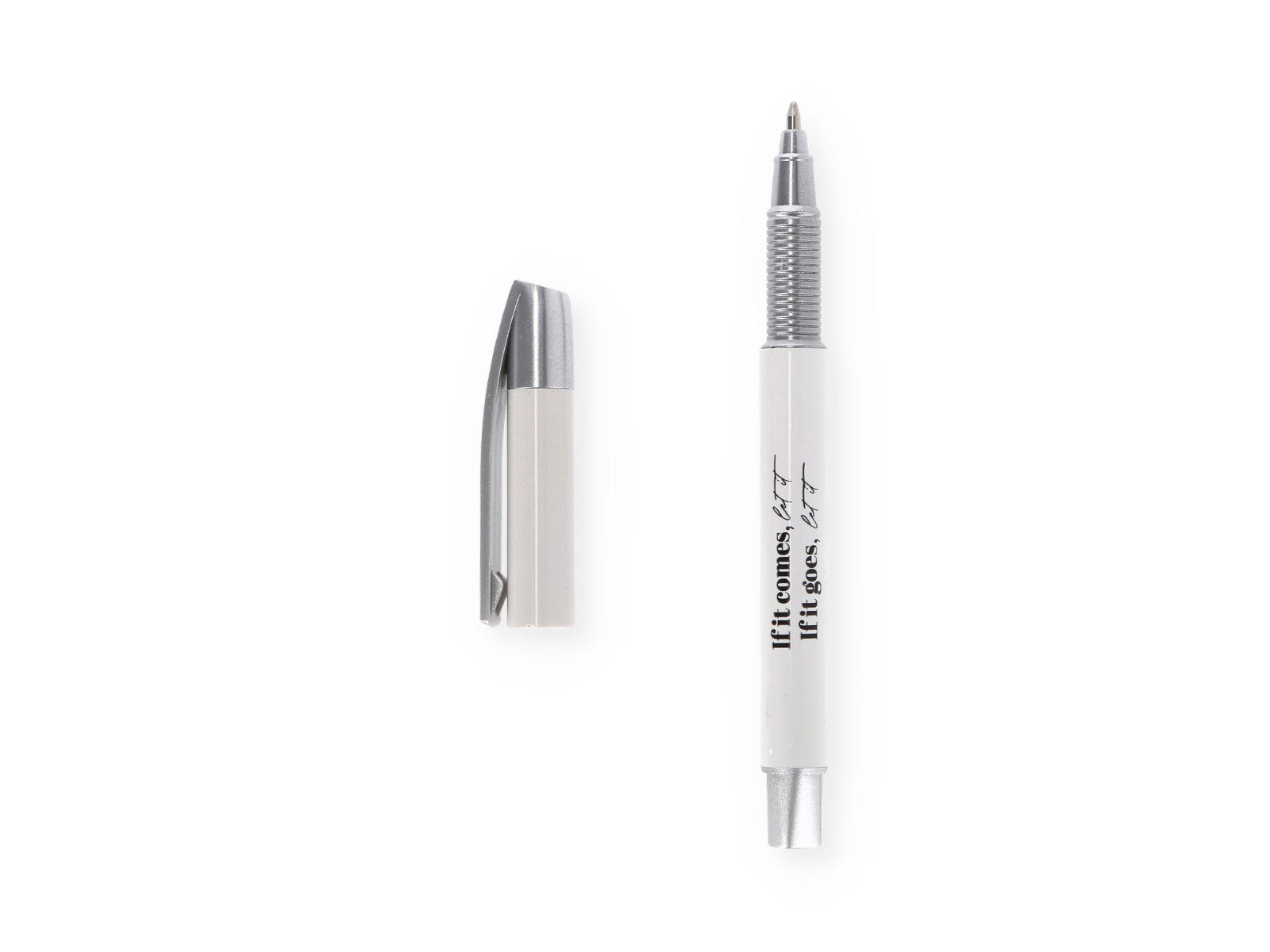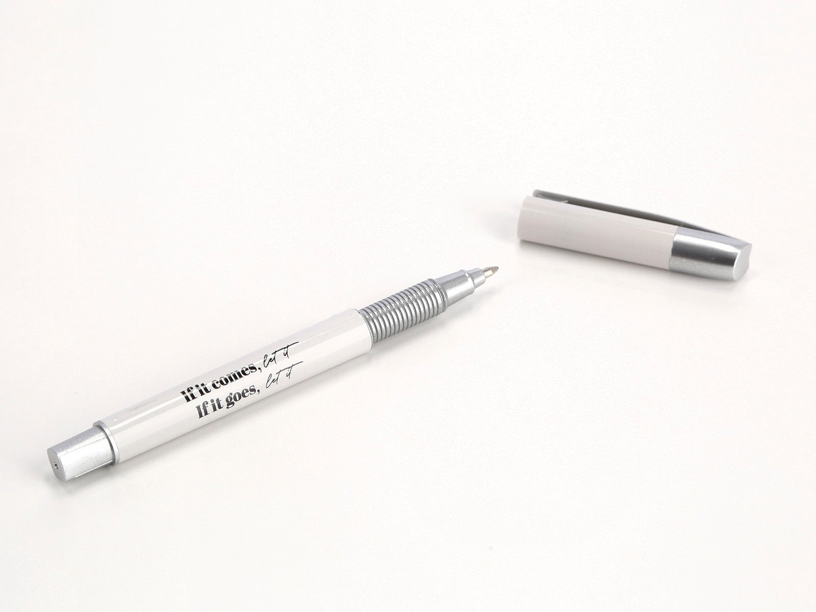 <li><strong>Motivación diaria:</strong> La frase “If it comes” grabada en el cuerpo del bolígrafo te recordará que las cosas buenas llegan cuando menos lo esperas, solo tienes que estar preparado.</li>