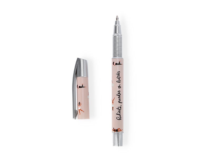 Diseño: este bolígrafo tiene un diseño muy especial, con estampado de siluetas en tonos rosa. ¡Es precioso! La tapa y el borde inferior son de color plata.