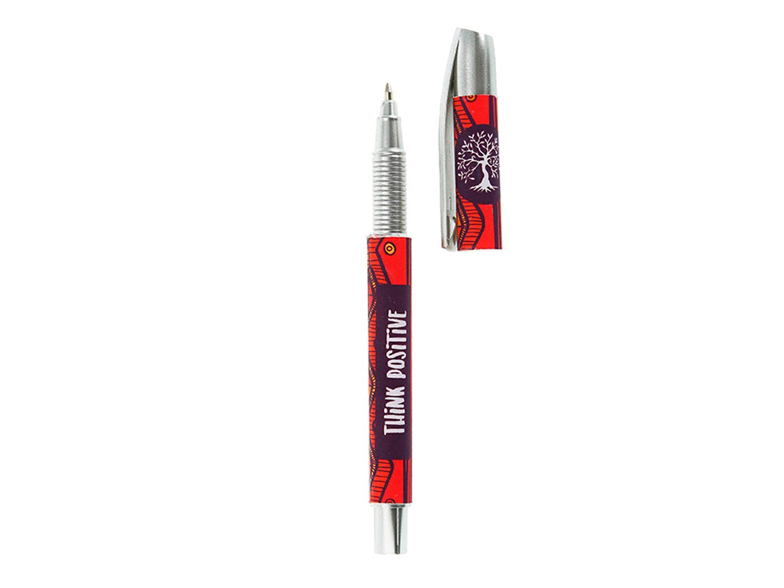 - Diseño Único: Con un fascinante diseño tribal en rojo y morado y un árbol estilizado en blanco, este bolígrafo será la envidia de todos en la oficina.
