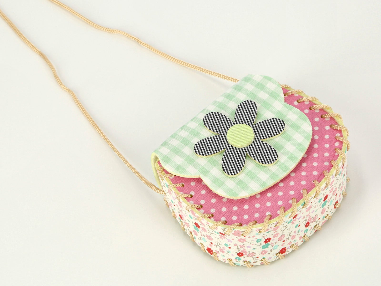 - Bolso bandolera infantil con flor de cuadros