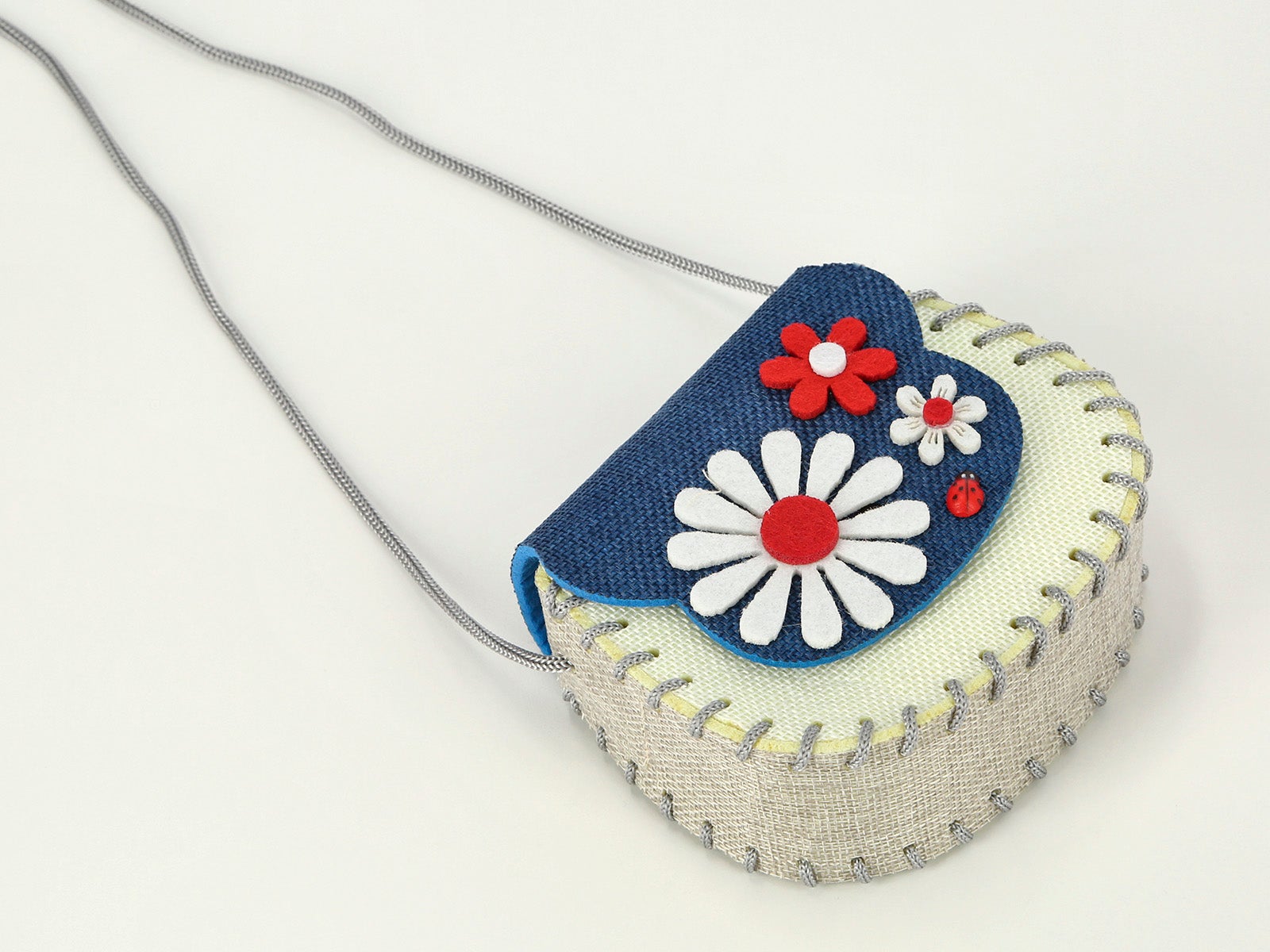 - Detalles florales en fieltro que destacan y dan textura al conjunto.
