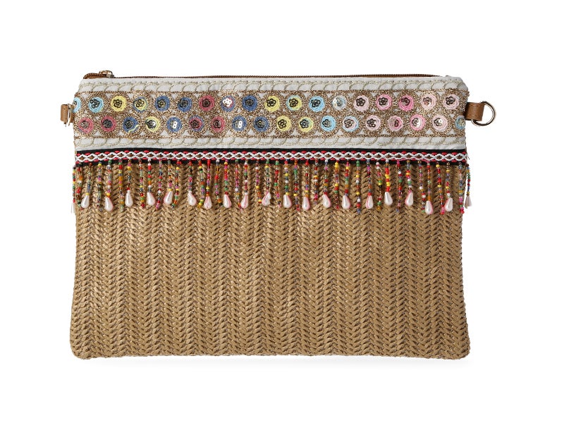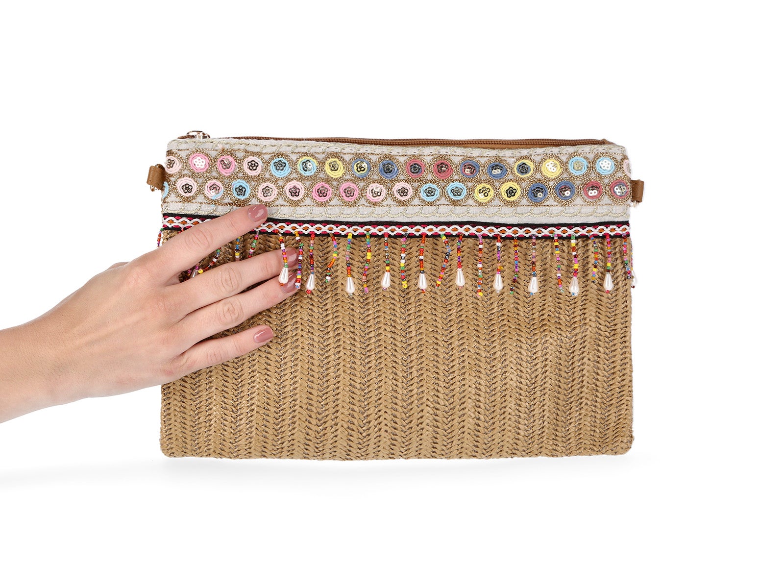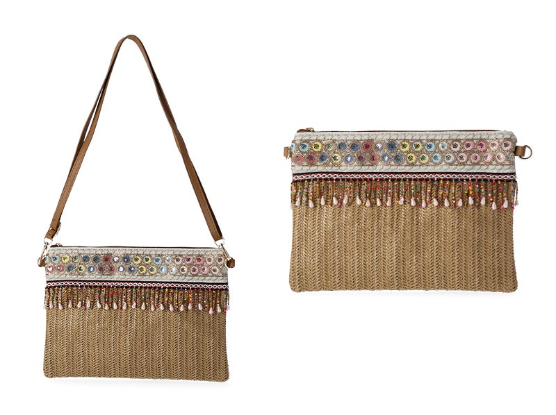 Bolso bandolera marrón detalle cuentas