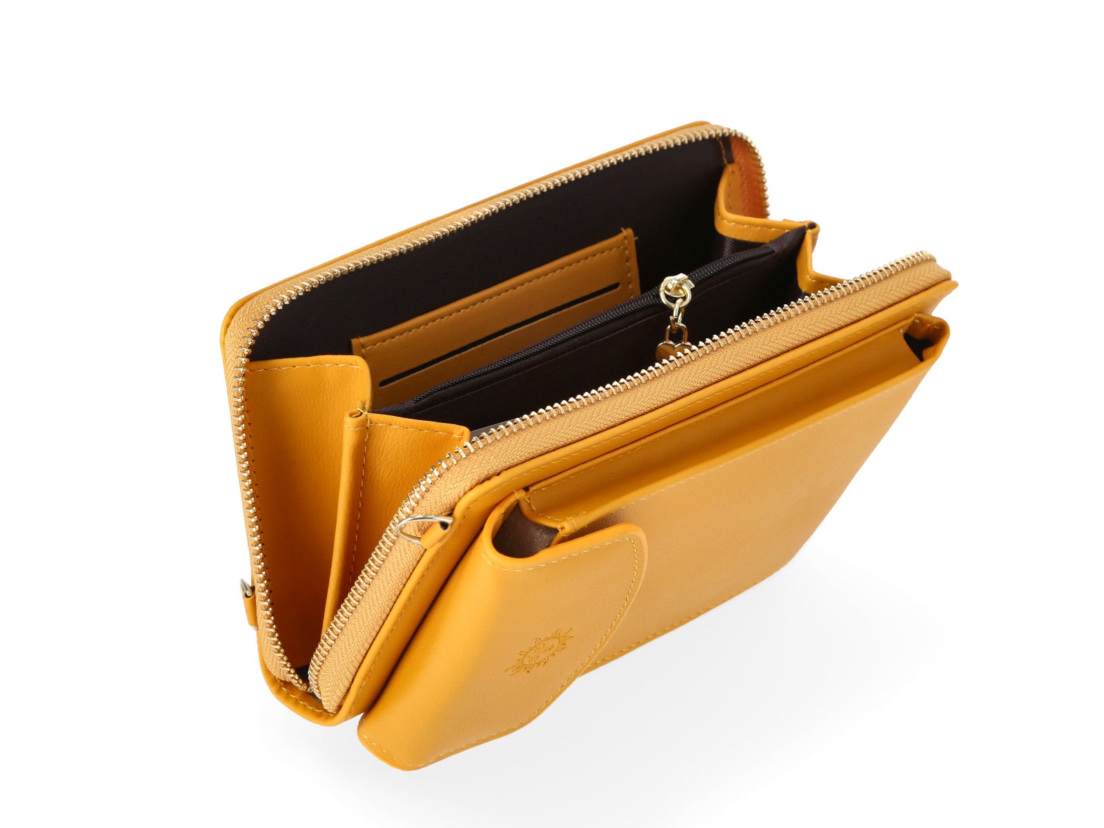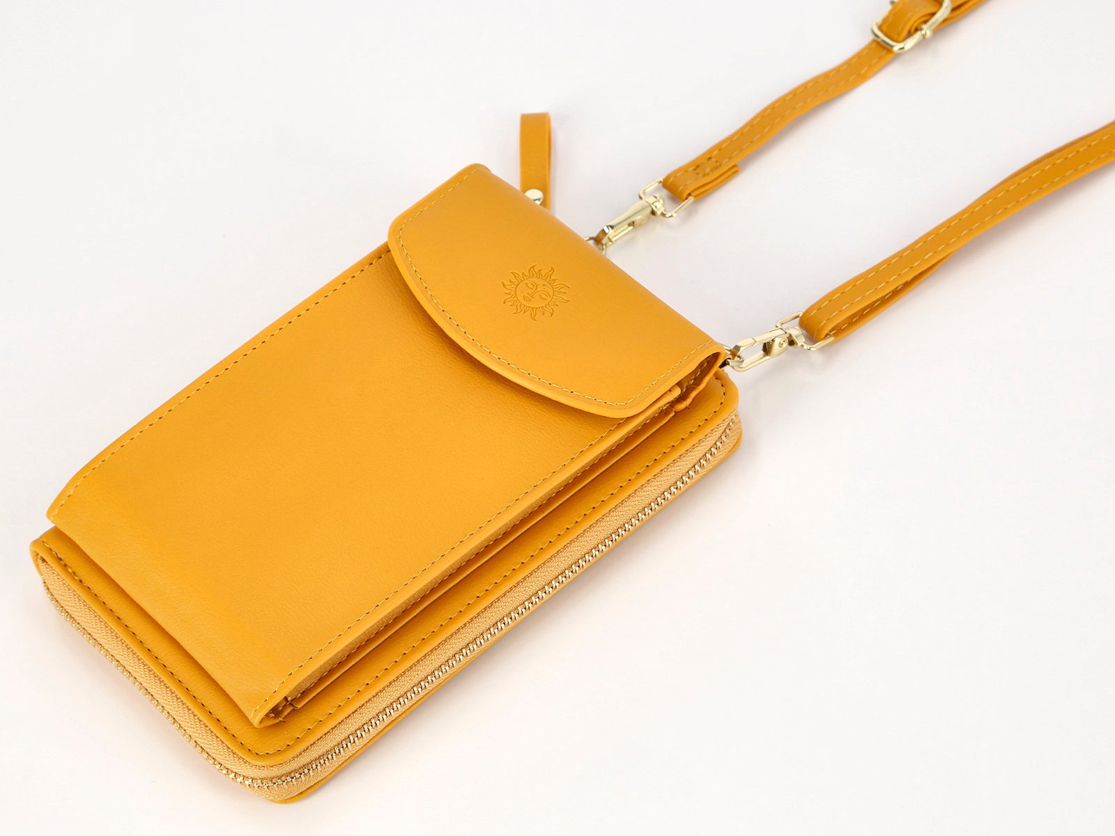 El bolso porta móvil y monedero amarillo sol es la chispa de alegría y practicidad que estabas buscando. Diseñado para esas almas organizadas (o aspirantes a serlo) que desean llevar justo lo necesario sin perder el toque chic que tanto les gusta.