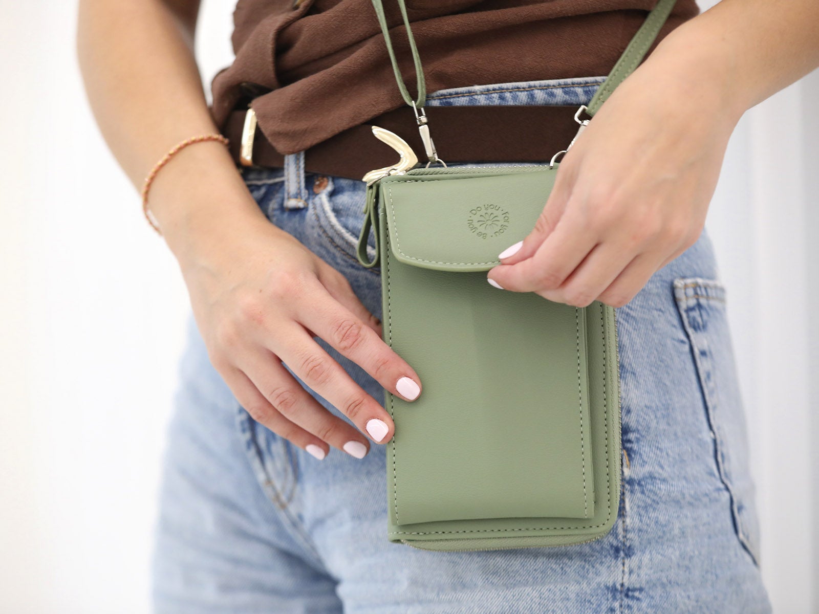 Descubre la magia del Bolso vertical verde oliva para móvil, tu nuevo aliado para llevar lo necesario con estilo y comodidad. Este bolso de ALE-HOP es perfecto para cualquier situación, ya sea para un paseo casual o una salida rápida. ¡El toque de color que tu día necesita!