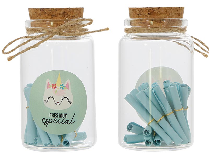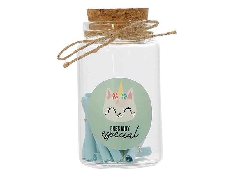Ilumina el día de alguien especial con el bote mensajes - Eres muy especial de ALE-HOP. Con un diseño encantador de 4x9 cm, este botecito contiene pequeños mensajes sorpresa que alegrarán el día. Ideal para decorar cualquier espacio y compartir buenos momentos.
