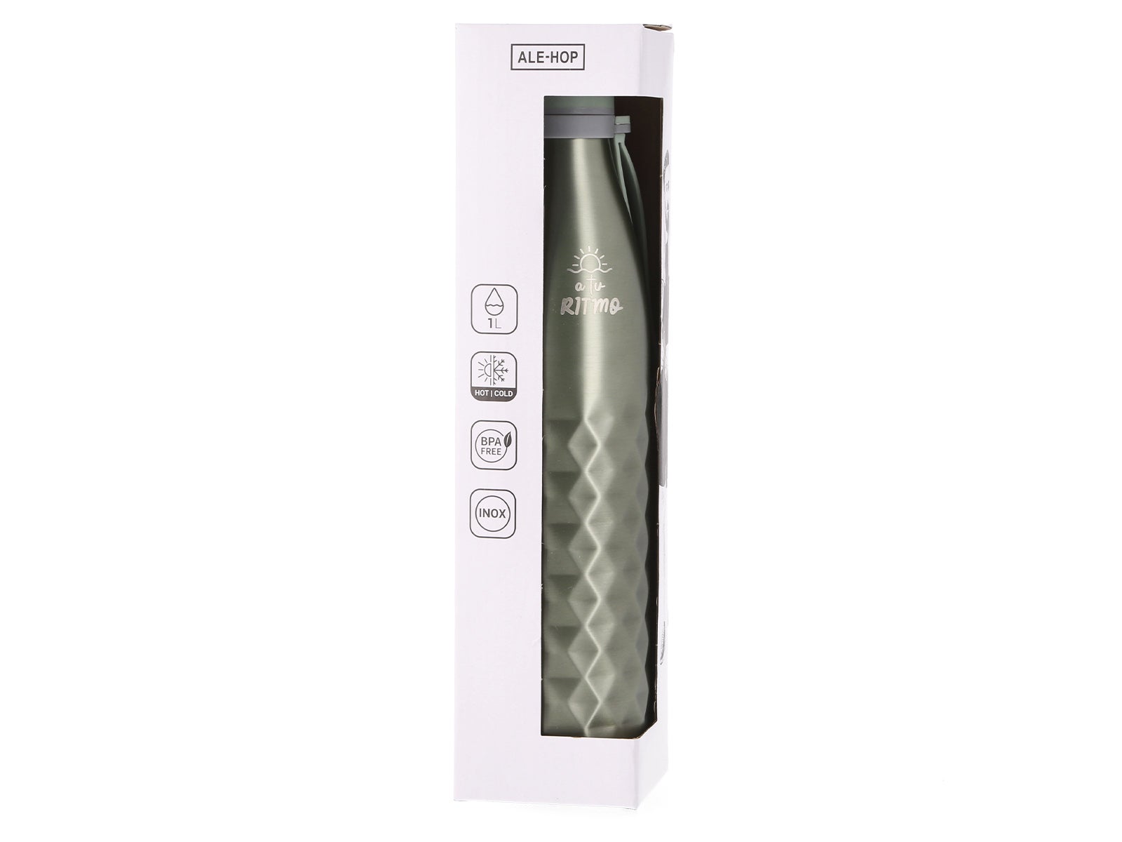 Con la Botella Acero Inoxidable Brillante 1L - A tu ritmo, de ALE-HOP, llevarás tu bebida favorita con estilo y personalidad. ¿Listo para marcar la diferencia?