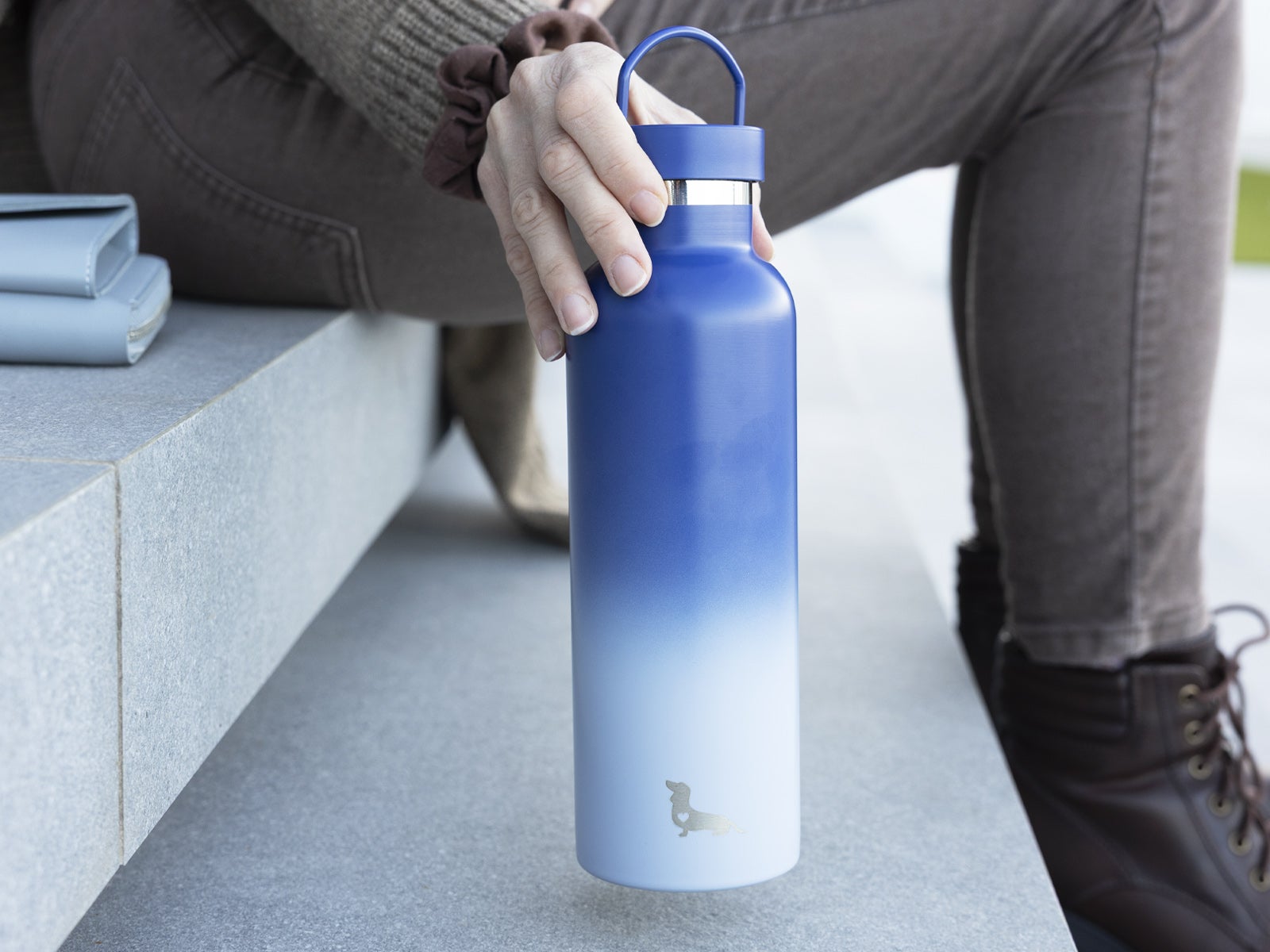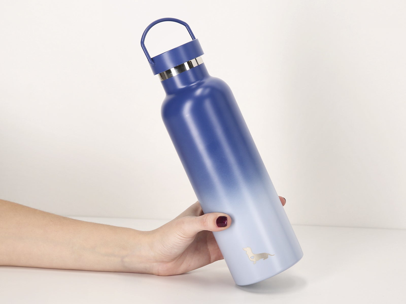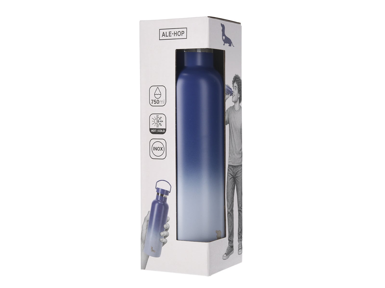 La Botella térmica 750ml - Azul y gris degradado es ese accesorio que se convierte en tu compañera de aventuras desde el primer sorbo. Su diseño en degradado, que pasa suavemente del azul al gris, le da un toque moderno y relajado que pega igual de bien en la oficina que en la mochila del gym. Ideal para quienes quieren hidratarse con estilo y apostar por opciones reutilizables, sin renunciar a un diseño bonito muy en la línea de ALE-HOP.