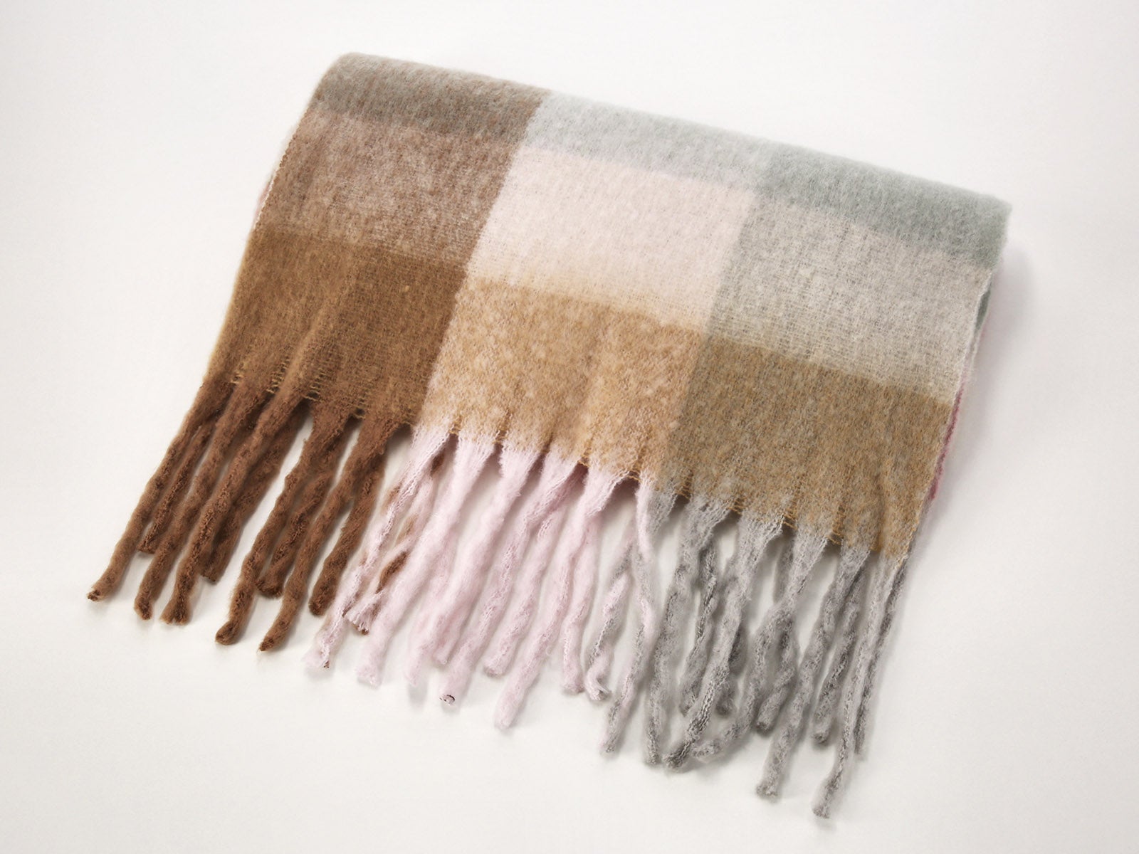 Descubre el confort y la moda de la bufanda con flecos y cuadros tricolor de ALE-HOP. Con textura suave y diseño irresistible, es el complemento perfecto para abrigarte con estilo este invierno.