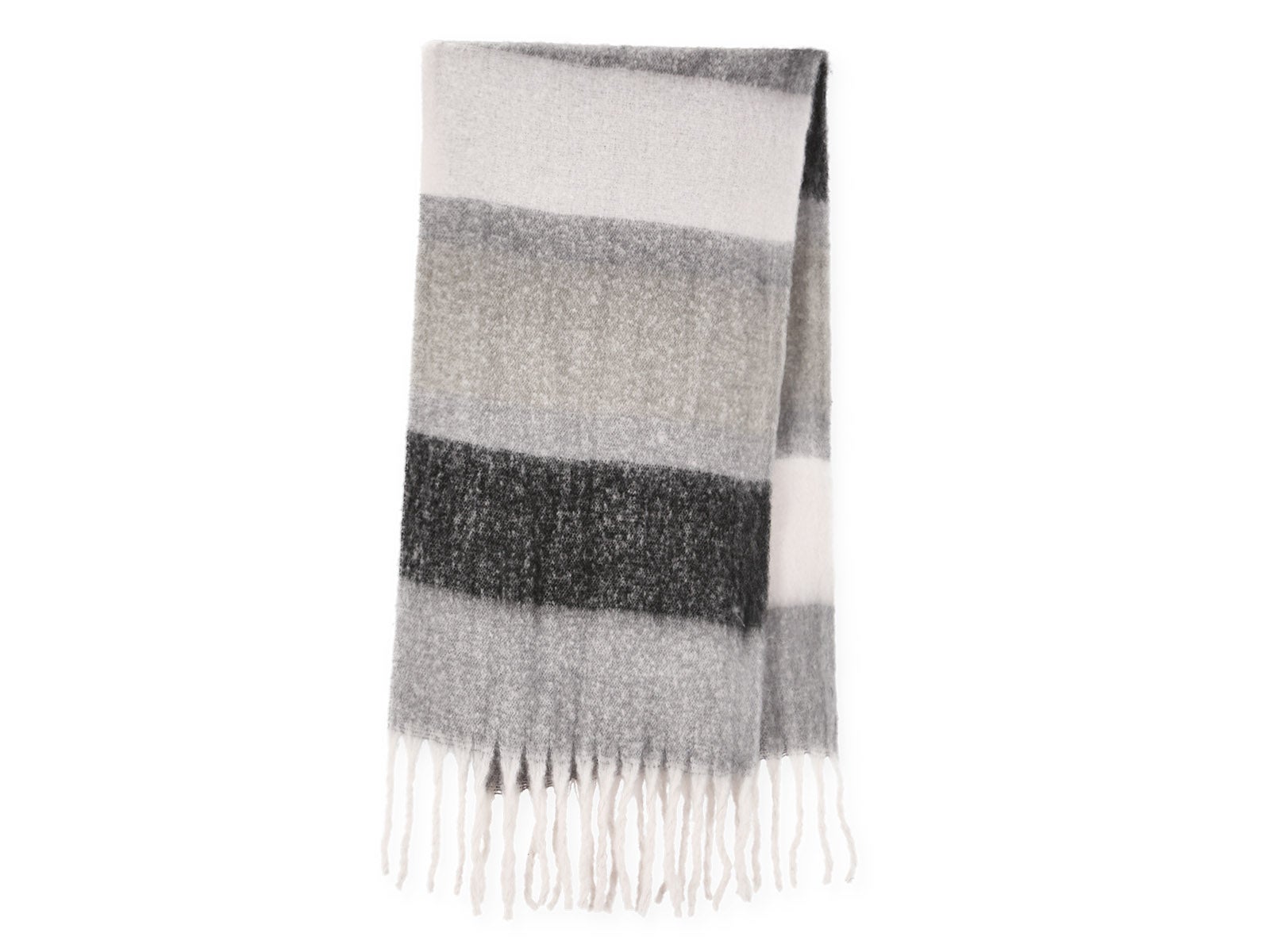 ¡Prepárate para enfrentar el frío con un toque de elegancia y diversión! La Bufanda de rayas con flecos blanca y gris de ALE-HOP es el complemento ideal para esos días fresquitos en los que necesitas un aliado para mantener el calor. Su suavidad acariciará tu cuello y te hará sentir abrigado sin perder el estilo.