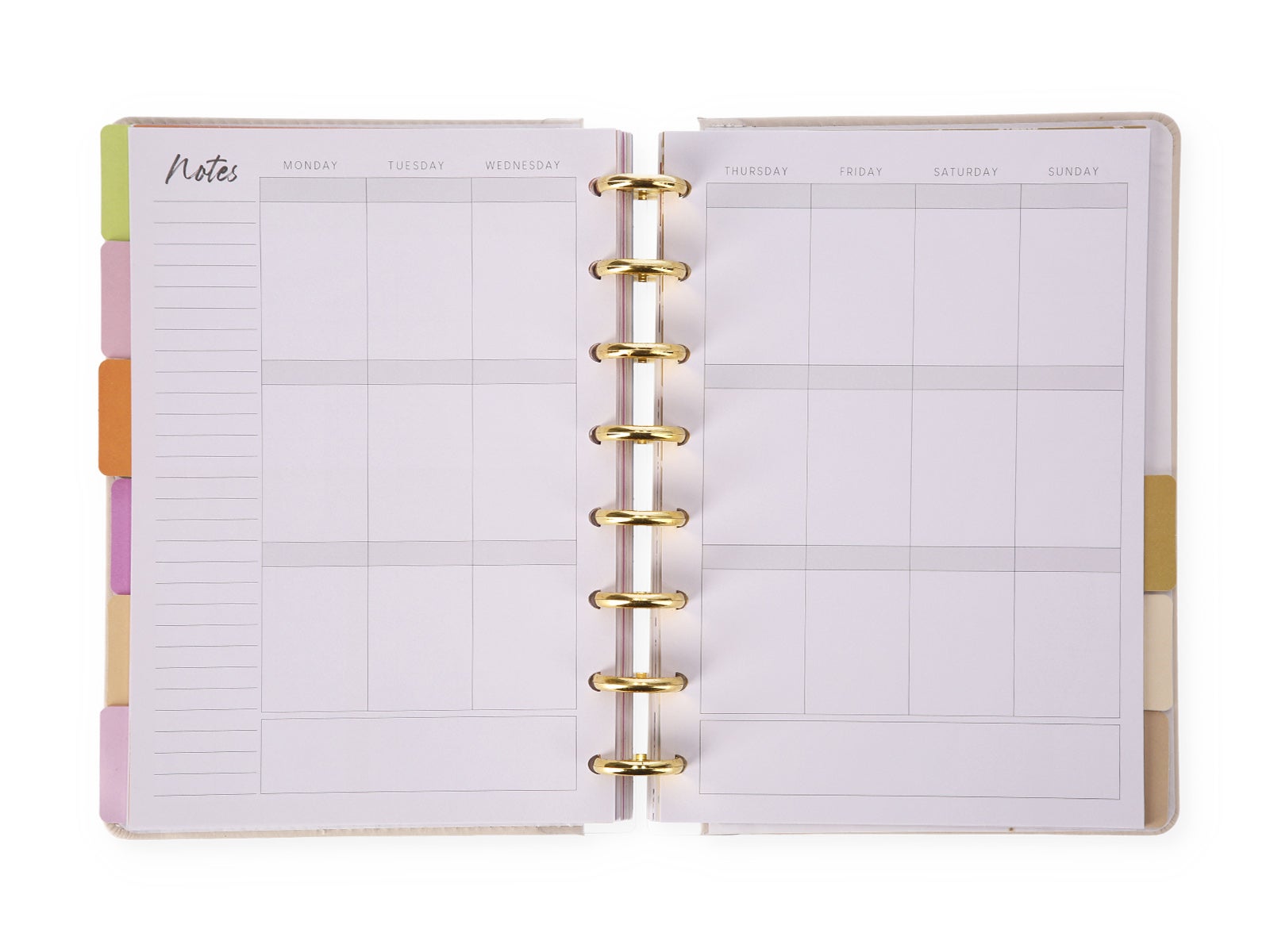 - Páginas preparadas para adaptarse a tu estilo único de organización; ya sean listas, notas o dibujos, ¡todo es posible!