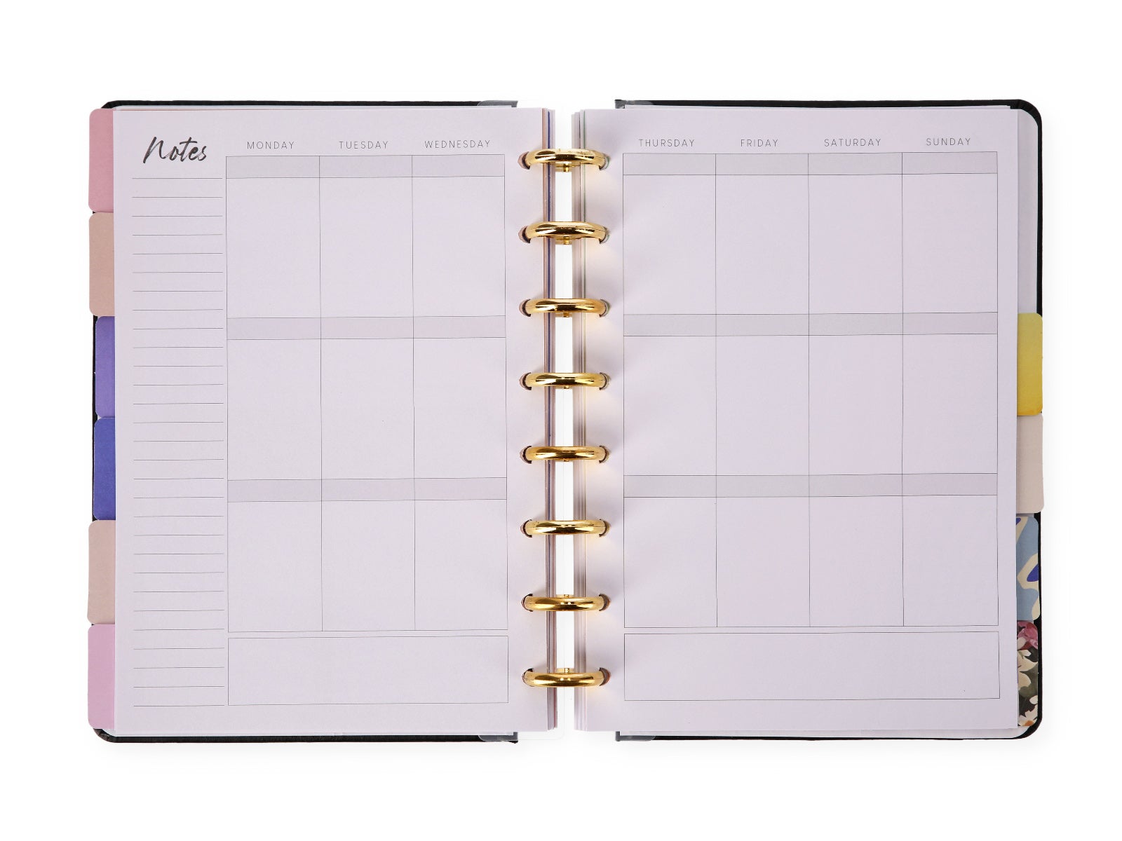 - Diseño: Este bullet journal cuenta con una estética elegante en color negro, adornado con la inspiradora y motivadora frase ‘Life is a journey, enjoy every step’.