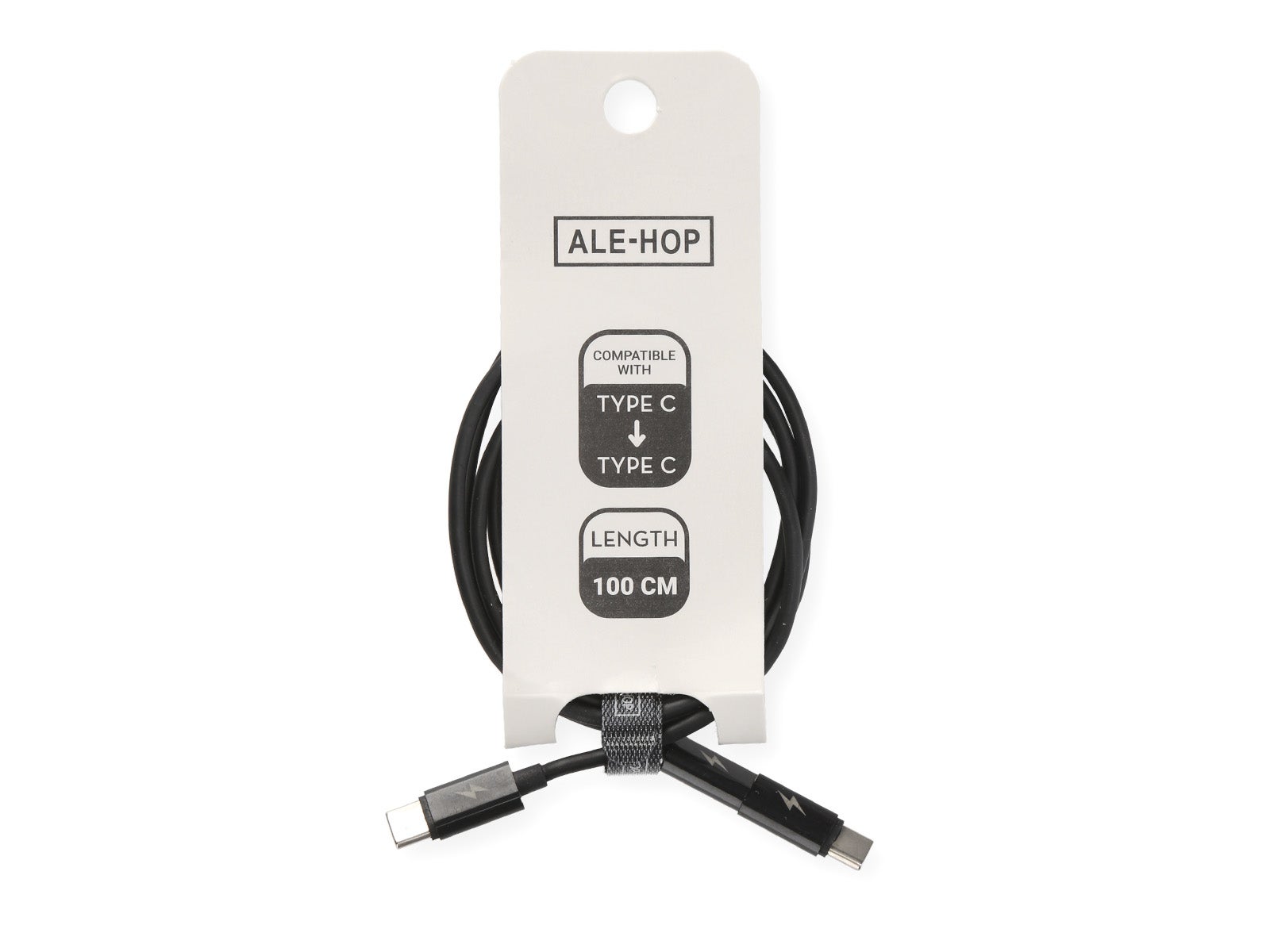 Cable USB tipo C de ALE-HOP con diseño elegante en negro, 1m de longitud para fácil conectividad, compatible con múltiples dispositivos y permite carga y sincronización de datos.
