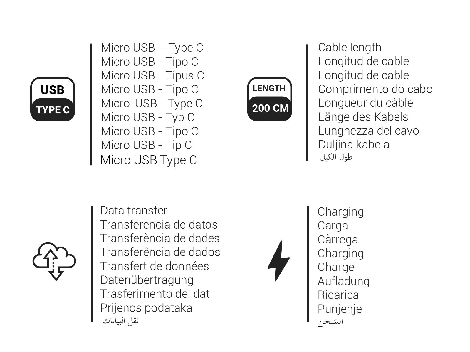 - Diseño: Un cable USB largo y elegante en color negro que dará un toque sofisticado a tu móvil mientras lo cargas o transfieres tus datos.