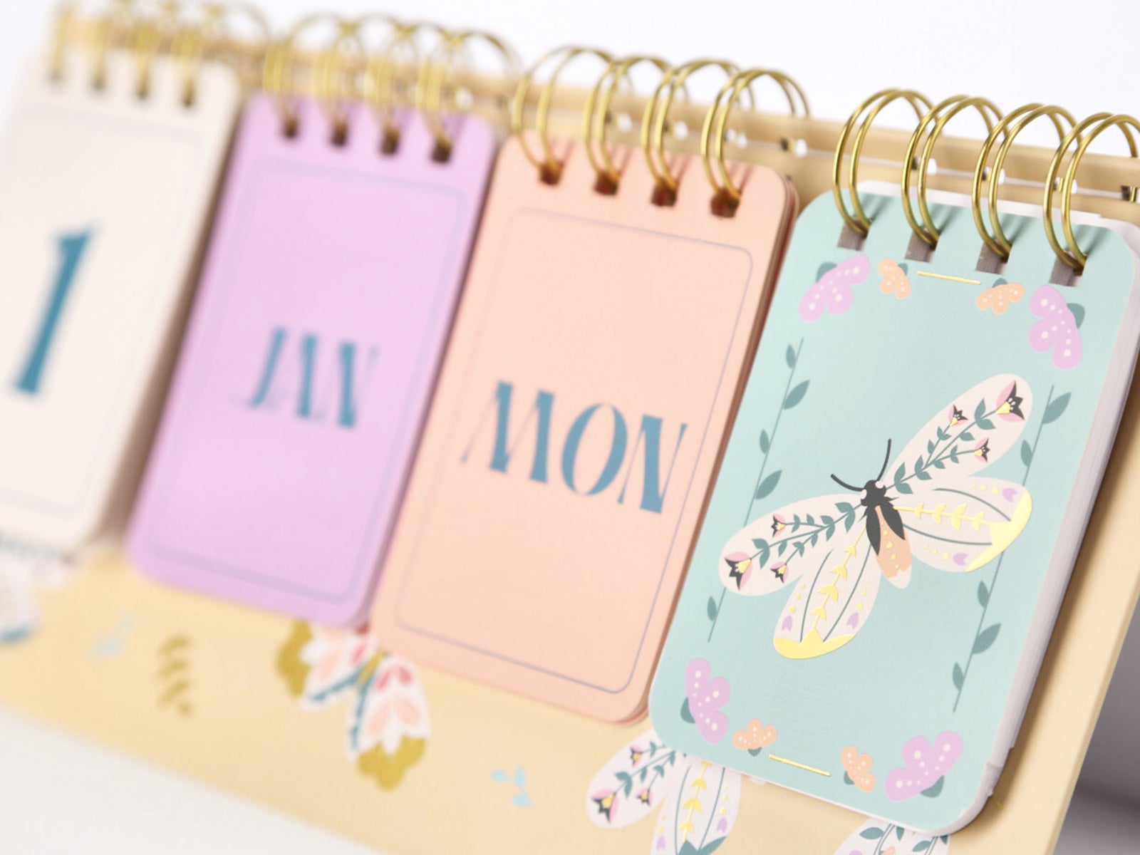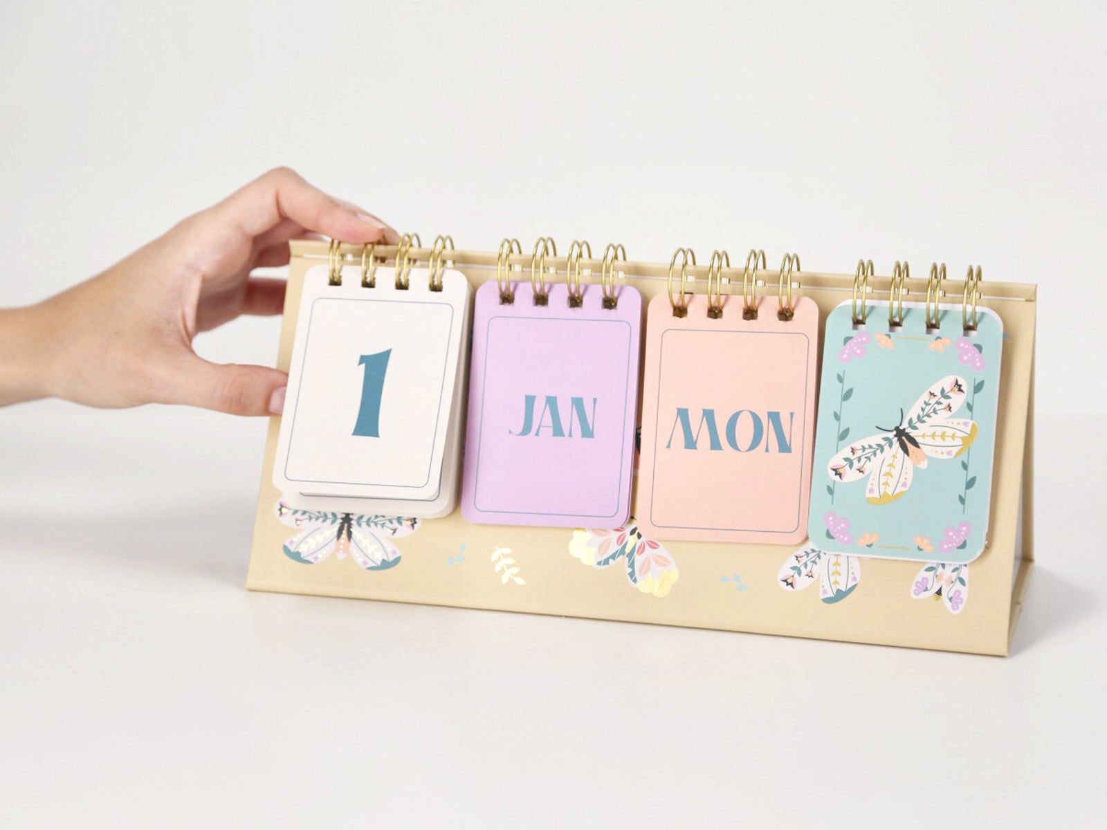 - Calendario de sobremesa “Mariposas” – Diseño pastel con detalles decorativos