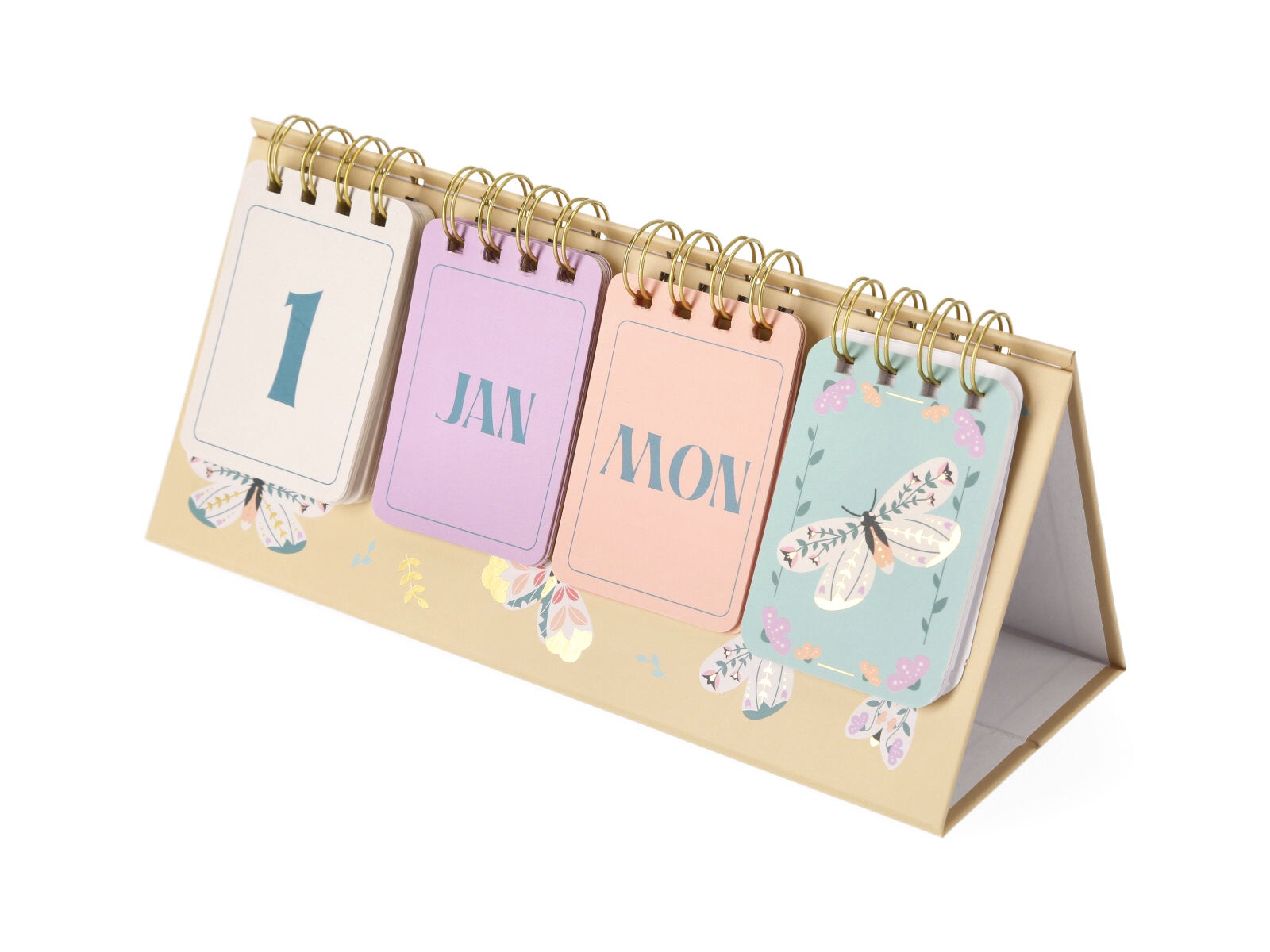 ¿Quieres llevar la naturaleza a tu escritorio mientras organizas tu año? El calendario de sobremesa “Mariposas” es perfecto para quienes adoran un toque de belleza en su rutina diaria. Con un diseño en tonos pastel y esos detalles decorativos que simplemente te harán sonreír, estarás deseando que llegue diciembre ¡para estrenar otro!