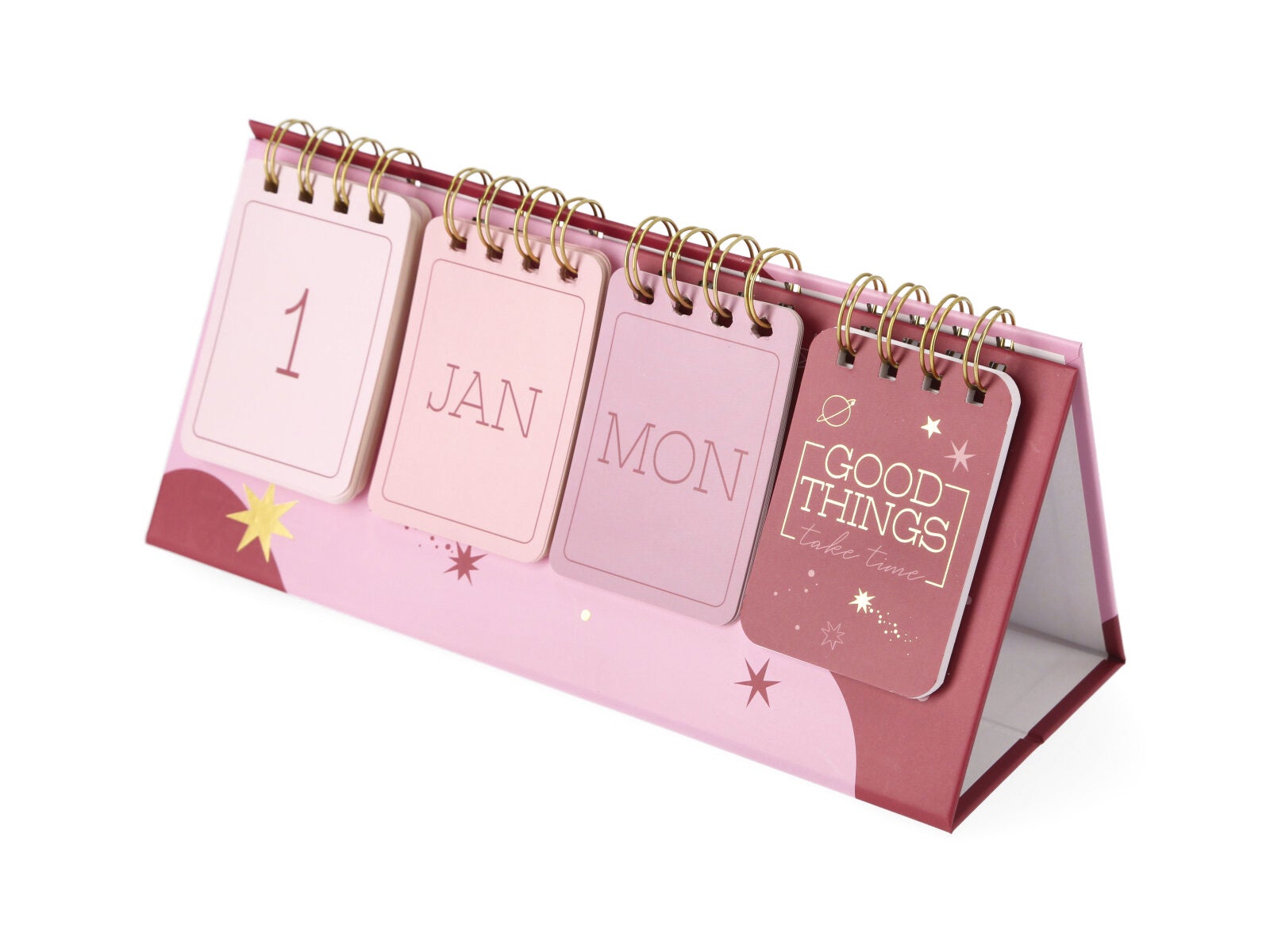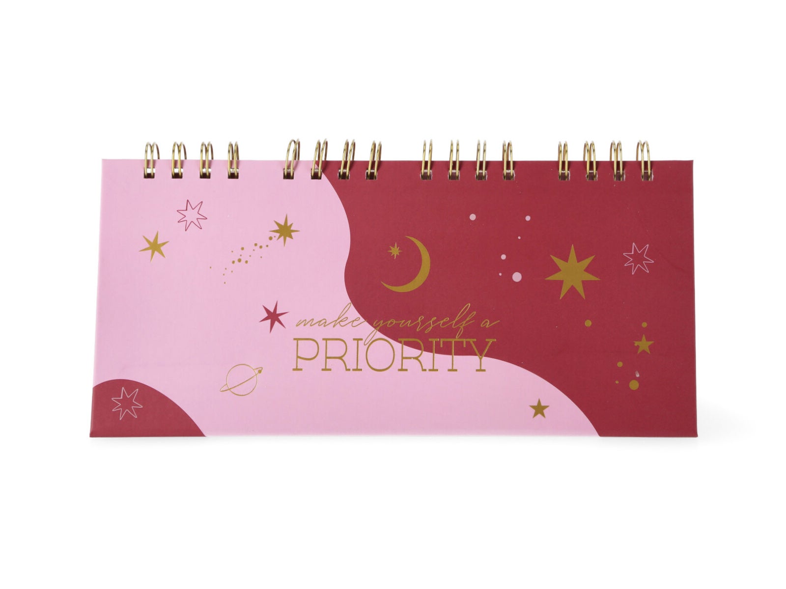 Calendario de sobremesa “Ondas” – Diseño rosa con detalles astrales