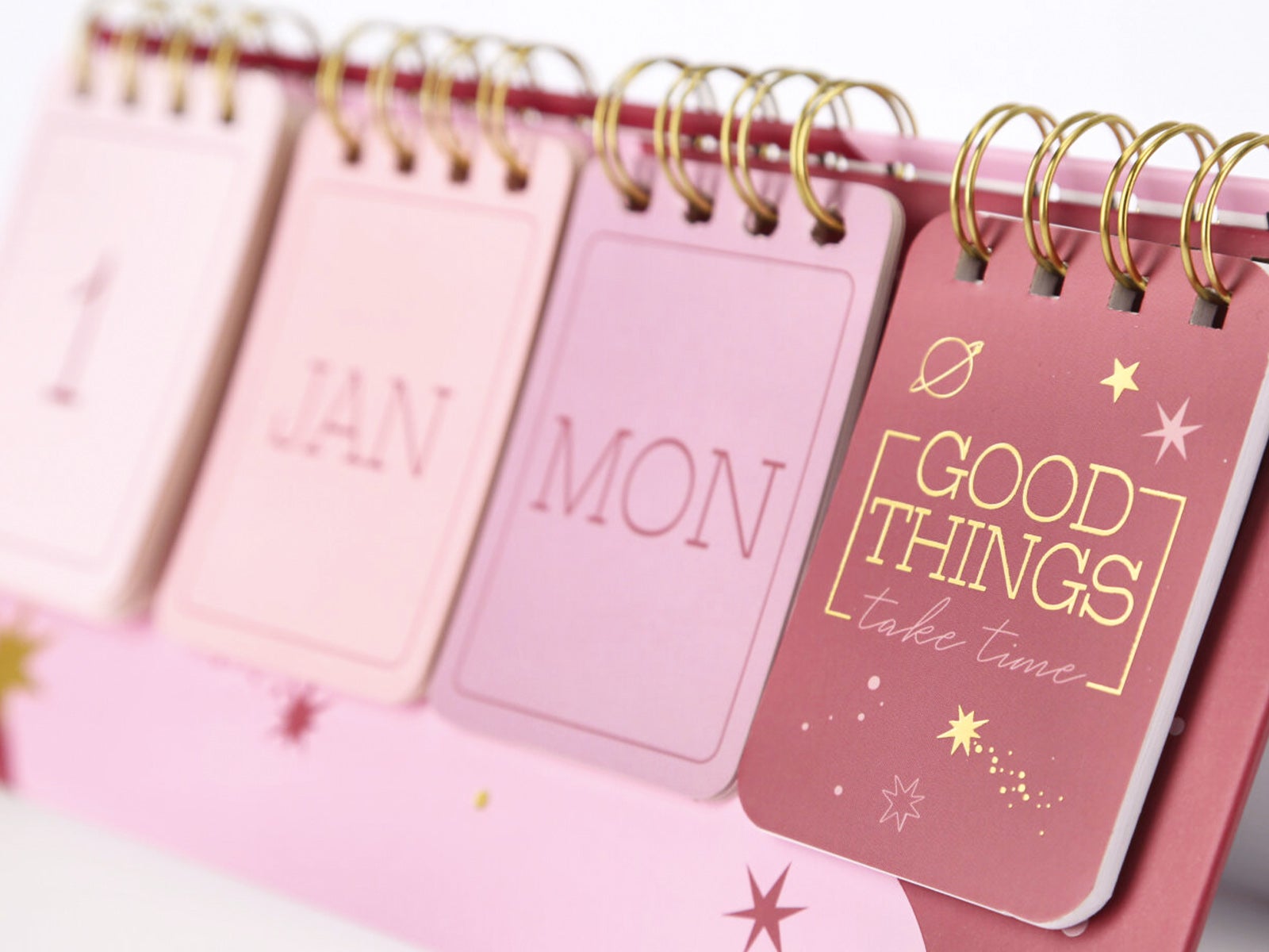 - Calendario de sobremesa “Ondas” – Diseño rosa con detalles astrales